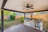Beautiful three bedroom,two bathroom house,in the highly sought neighborhood of Alden Bridge. windows overlooking private wooded backyard,with several sitting areas,an outdoor kitchen with a covered patio formal dining room,a study that can be used as an extra bedroom,The open floor plan is perfect for entertaining family or guest with the kitchen opening to the living room with a custom 2-sided rock fireplace coffee bar. Refrigerator,Washer and Dryer included. Zoned to exemplary CISD schools. MLS# 77776237