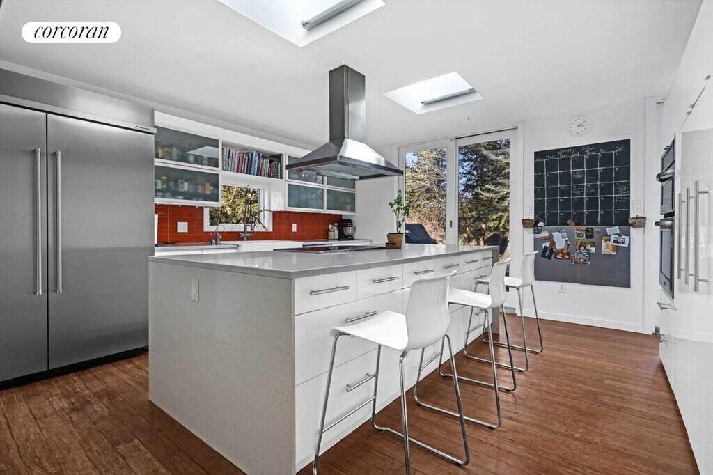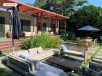 This 4-bedroom Sag Harbor cool contemporary is perfectly located with water access down the street, under 1 mile to Long Beach, and a few short minutes to Sag Harbor Village. Enjoy the light-filled open floor plan with modern furnishings, which includes a sleek cook's kitchen, dining and living areas made for relaxing, new spa like bathrooms, a double office, and library, all with oversized windows looking out to the beautiful backyard. There you'll dine al fresco on the large deck, lounge by the heated gunite pool, or take an afternoon nap in the hammock, all while appreciating the lush landscaping and outdoor shower. Just 1 block to Serene Green - the very popular farm stand/market, and minutes from Sag Harbor village shops, restaurants, and theater. With close proximity to marinas, golf course, and several stunning beaches, your dream vacation awaits. [[Rental Registration # RP241047]]