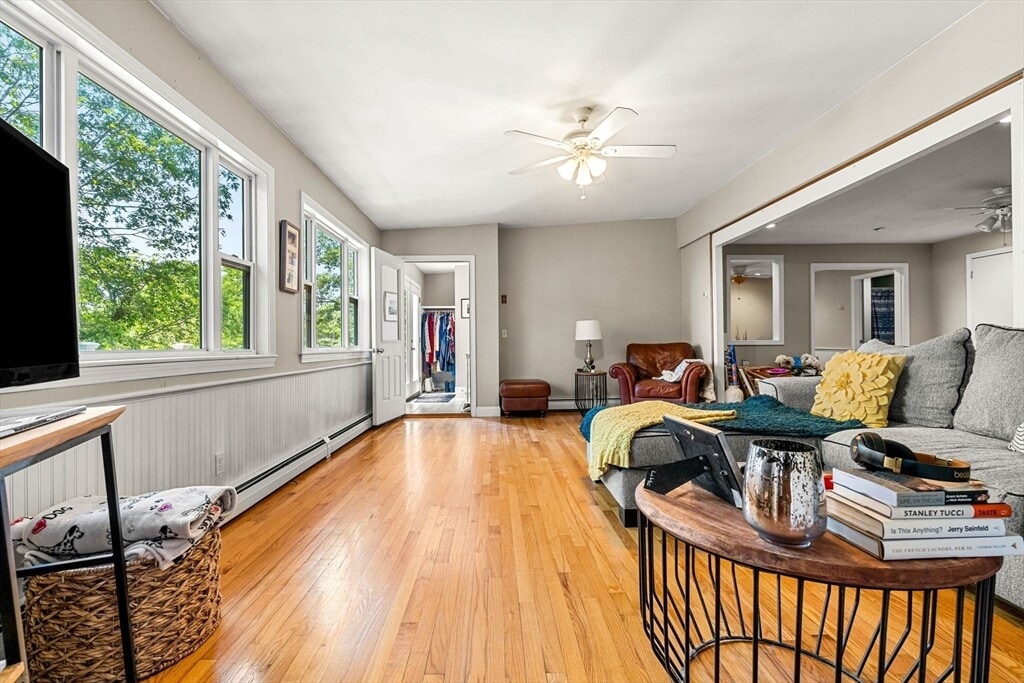 Tucked away at the end of a quiet dead-end street,this bright and airy 4-bedroom,1-bath apartment offers a peaceful setting with glimpses of Good Harbor Beach from both the expansive deck and living room. Just minutes from one of Gloucester’s most popular beaches,the home also provides convenient access to Route 128,grocery stores,specialty markets,and a variety of retail shops. The unit features newer windows and beautiful hardwood floors throughout,along with a spacious layout that includes a living room,family room,dining room,and an eat-in kitchen. Once inside,enjoy the ease of single-level living (approximately 10 steps lead up to the deck and main entry). Additional highlights include 2–4 car off-street parking,a well-maintained yard,and plenty of space to create a vegetable or flower garden. Owner-occupied property. All utilities included in rent. Pets' negotiable. First and last required at signing. Application will be available at Open House on Sunday. MLS# 73492453