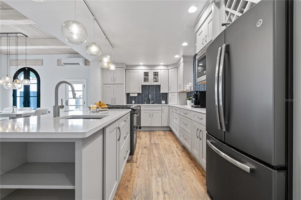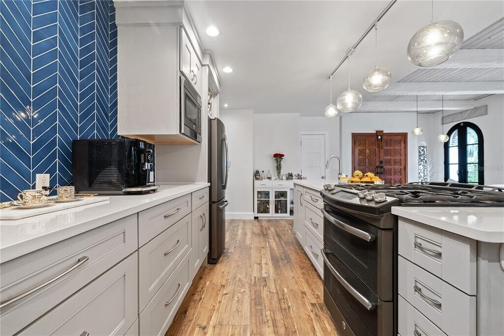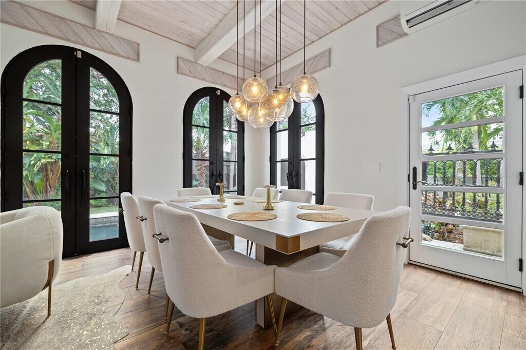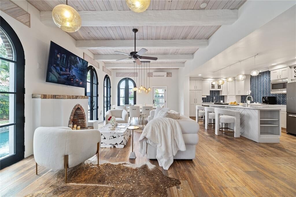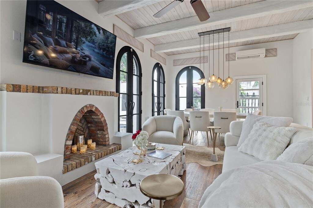 Mediterranean compound estate double lot in historic Old Northeast! On a commanding corner lot in St. Petersburg’s desired historic Old Northeast,this Mediterranean-inspired compound estate offers a rare blend of architectural distinction,sustainable systems and multi-residence flexibility. Renovated by award-winning Strobel Design Build,the three-bedroom,two-bath primary residence showcases custom design features including bespoke metal arched double-opening doors and handcrafted windows that frame the estate’s lushly landscaped grounds. All on .28 acres,93-by-131 feet. Solar panels—owned outright—support energy efficiency,while natural gas services the gourmet kitchen and Aqua Lounge fireplace. A seamless indoor-outdoor connection flows from the open-concept interiors to a screened lounge,where gas fire and ceiling fans enable all-season entertaining. Beyond lies a travertine pool deck and a saltwater pool with integrated Fastlane Pro system for lap training or leisure. Designed for privacy and versatility,this gated compound is further enhanced by The Annex,a two-bedroom,one-bath guesthouse—ideal for guests,extended family or income generation,The Nest,a detached one-bedroom,one-bath garage apartment with private entry. Four power meters,offering zoning flexibility for future development or estate planning. A caged shed for the ideal vegetable garden or orchids. Concealed behind layered landscaping and architectural hardscapes,the property provides a resort-style experience in a private estate setting—in this desired neighborhood,all just moments from waterfront parks,fine dining and St. Petersburg’s Beach Drive district. MLS# TB8427258