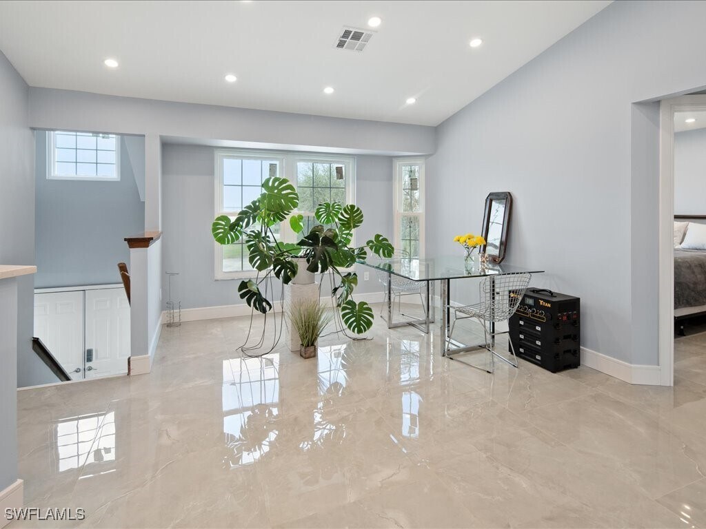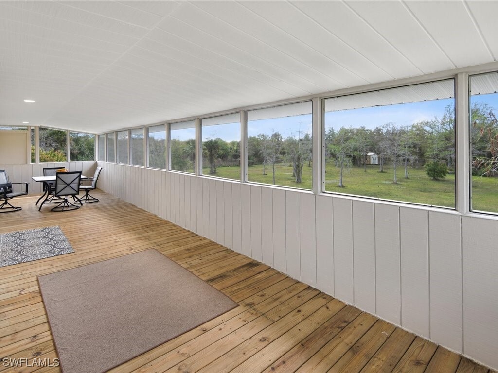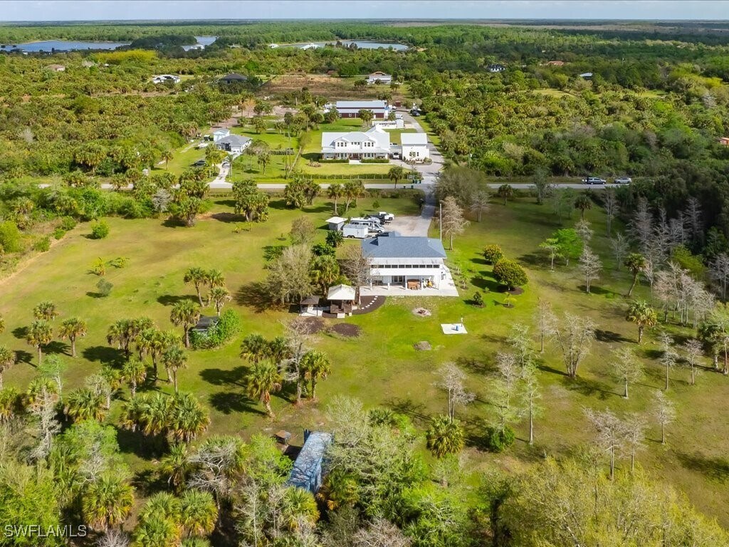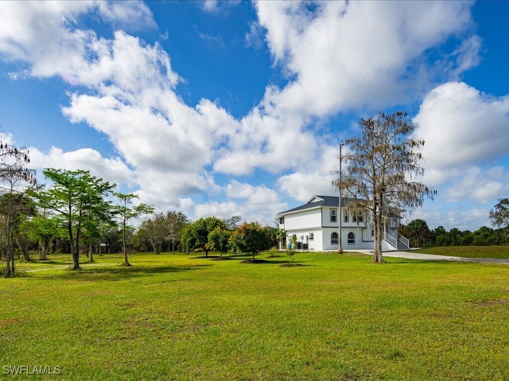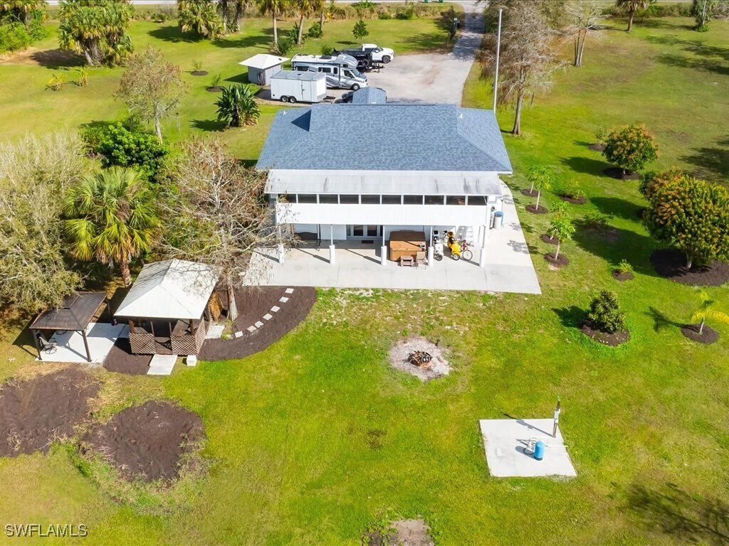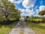 This exceptional 5-acre estate,partially fenced with a entry gate,offers a beautifully renovated second-floor living space featuring three bedrooms,two full bathrooms,elegant 30-inch tile flooring,a custom kitchen with quartz counters,Bosch refrigerator,Fisher & Paykel dishwasher,large pantry,16 new impact windows,new HVAC units,and fresh interior and exterior paint. First floor has an additional bedroom and a full bathroom. Upstairs,three sets of French doors open to a sprawling 40-foot screened lanai with preferred south exposure,perfect for relaxation or entertaining. Outdoor amenities abound,including a paved driveway,two gazebos with electricity,a versatile shed with water,electric,and air compressor,fire pit,a diverse collection of fruit trees,a 10' x 40' shipping container for extra storage,and a chicken coop an ideal property to embrace the estate lifestyle. Downstairs have one bedroom with attached bathroom. The remaining space is enclosed in AC but unfinished. The second floor alone can be rented for $2,500.