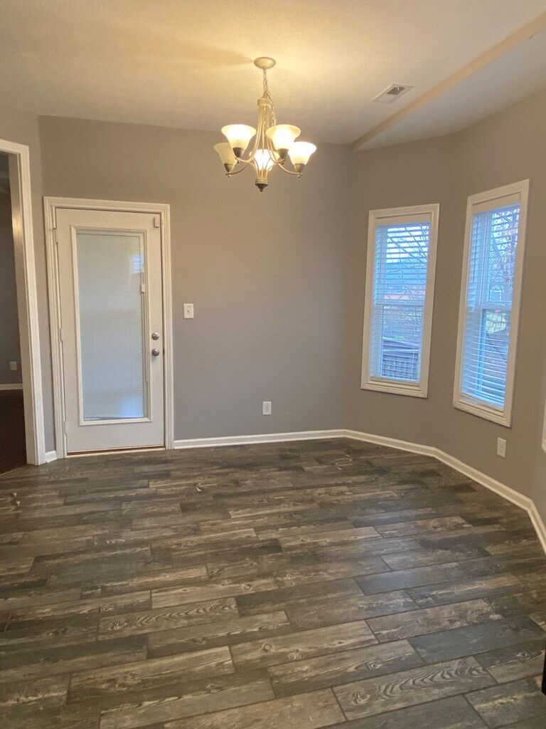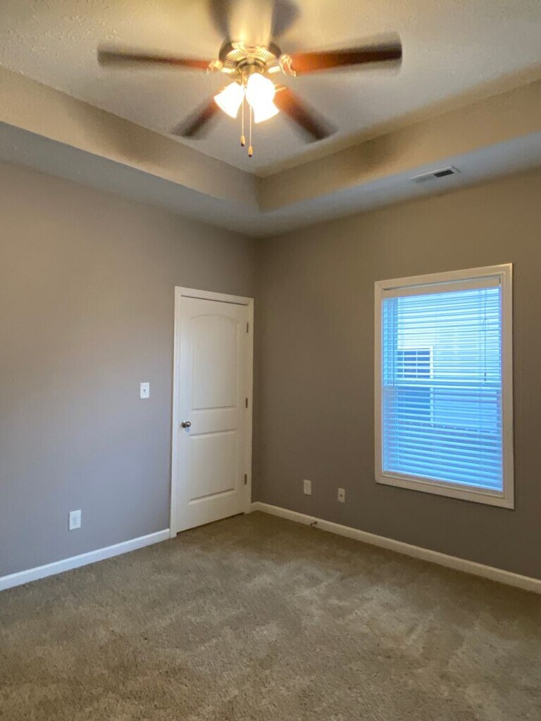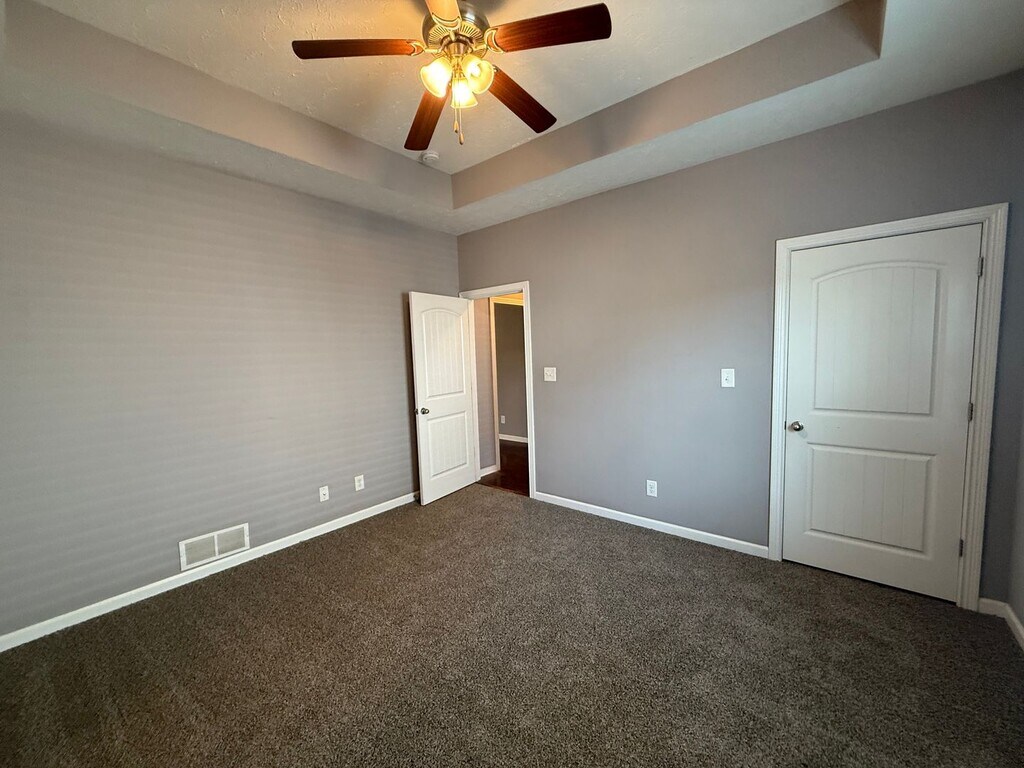This home features a 2-car garage and fenced yard. Split bedroom floor plan. The primary suite offers 2 walk-in closets, trey ceilings and a full bath with double sinks and garden tub. Both of the secondary bedrooms also have large walk-in closets. All new carpet in the bedrooms. In the eat-in kitchen you'll find lots of counter and cabinet space, pantry and a tile backsplash. It gives access to your covered back porch and privacy fenced yard. Small dogs 25 lbs and under welcome. Pet deposit is $400.