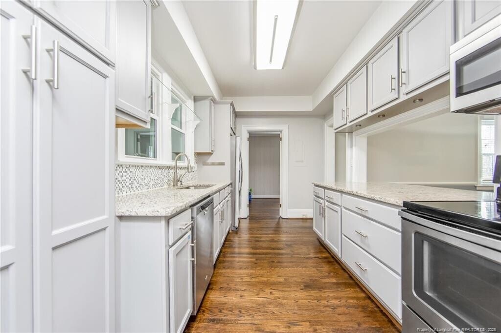 Nestled in the heart of Haymount, this stunning 1938 cottage boasts a seamless blend of historical charm and contemporary flair. With original solid oak wood floors running throughout, this home has been tastefully updated with modern touches. Ideally located within walking distance to downtown Fayetteville, Woodpecker Stadium, and an array of trendy restaurants and shops, this home is perfect for those seeking a vibrant and convenient lifestyle. Step inside and discover the elegant living area with access to the screened-in porch overlooking the backyard. The first floor also features a small office, and laundry room, providing ample space for work and play. Entertain in style with a formal dining room and fully-equipped gourmet kitchen, complete with all the latest appliances.The second floor is dedicated to the luxurious owner's suite, complete with a stunning ensuite bathroom. With over half an acre of land, the spacious backyard is perfect for hosting outdoor gatherings.