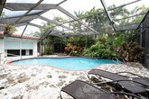 This furnished residence features, recessed lighting throughout, and a sleek kitchen with stainless steel appliances and a separate dining area. The bathrooms have been updated, and the outdoor space offers a peaceful and serene pool and jacuzzi under a screen covered terrace. Rent includes pool and lawn maintenance, along with a beach club membership, all paid by the owner. Available for a six-month rental from November through May. Garage not included. The home is equipped with hurricane-impact windows and doors.