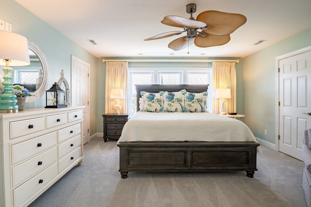 NEW TO OUR OFF-SEASON PROGRAM - AVAILABLE DECEMBER THROUGH MID-MAY - CALL TODAY TO RESERVE RUFFIAN'S ROOST FOR YOUR WINTER GETAWAY Professionally Decorated! Incredible views of the sound, just steps to the beautiful Carolina Beachfront, marina and the north end fishing pier. The home is smart wired and has a generator that automatically comes on during power outages. Two bedrooms on the main floor both open up to the back screened sun deck. The roomy primary bedroom suite is on the top floor and opens to an ensuite balcony with a breathtaking sunset view over the water. Spend your days running back and forth to the oceanfront just a few blocks to the east, and spend your evenings watching boats go by from your front screened-in porch. Private Driveway with garage. Enjoy the foosball table, ping pong table, dartboard cabinet, cornhole board set, and Bowflex home gym for more fun during inclement weather! Also, a second refrigerator and an outdoor shower for your convenience. The front screened porch has rattan furniture complete with cushions and bright colored pillows, also a high-top table to enjoy your morning coffee. The home has an open floor plan, with French doors to the water view from the front porch. The kitchen has granite counters, a center work island, and dining table. Your two guest bedrooms are on this level with the primary king suite on the top level with an ensuite bathroom with jacuzzi tub, and more water views from the private balcony. The primary bedroom also has a private sitting room for that desired quiet time, or your "work from home" with a convenient office work desk. The laundry room is also conveniently on this level. Please note the home is ADA compliant with an available elevator. Elevator Policies: Please note: The elevator is for convenience only and does not guarantee ADA Compliance or Wheelchair accessibility. Although elevators are checked on a regular basis, Sea Coast Rentals/Owners will not be held accountable if they are not operating or functioning properly during your stay. No refunds will be issued for these closures. Call now before this amazing rental is spoken for! First-come, first-serve. **Please contact Ann at Sea Coast Rentals for further information and/or to check available dates. Check out all our rentals: both furnished off-season and unfurnished long-term. **