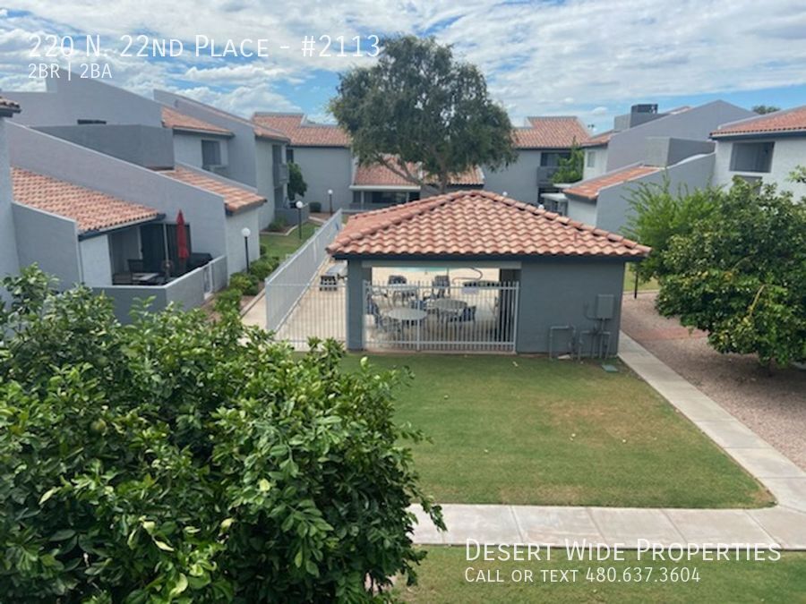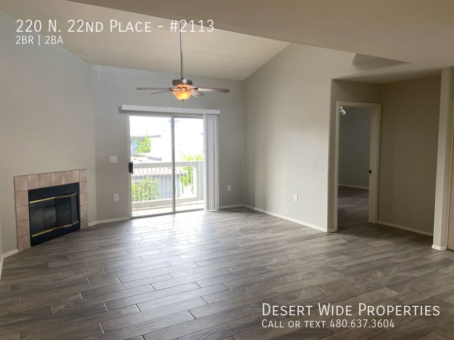 Stylish 2 bedroom upstairs condo with soaring vaulted ceilings. Spacious great room with fireplace overlooking community pool and common area just off the private patio. Washer & dryer included & indoors. Remodeled primary shower with popular gray toned tiles. New wood look tiles throughout condo & designer 2 tone paint with gray walls. Kitchen complete with new SS appliances & newer HVAC. Lots of light and space. Bonus: water, sewer & trash included! This property is offered by Desertwide Properties Group, Brokered by Southwest Property Sales & Leasing. We require that all applicants tour the property before applying. The Security Deposit must be given within 24 hours of approval. If applicant does not occupy the property, the deposit will be retained by the owner to recover loss of rental funds and re-advertising costs. Application fee $65.00 non-refundable. $395 Admin fee, $85.00 re-key fee, 2.9% monthly service fee. Refundable Security deposit is 80% of the monthly rent with remaining 20% a cleaning deposit/fee. Half of cleaning deposit is non-refundable. Pet screening is required for all lease applications. Pet deposits and service fees may apply and to be determined by third-party screening, per our states pet policy. $25.00 A Month Pet Rent On Top Of Regular Rental Amount $300 Refundable Pet Deposit 1 Small Pet With Owner Approval