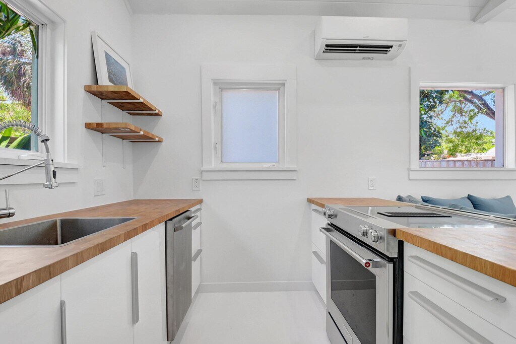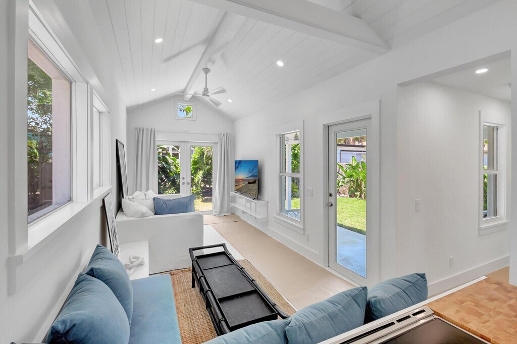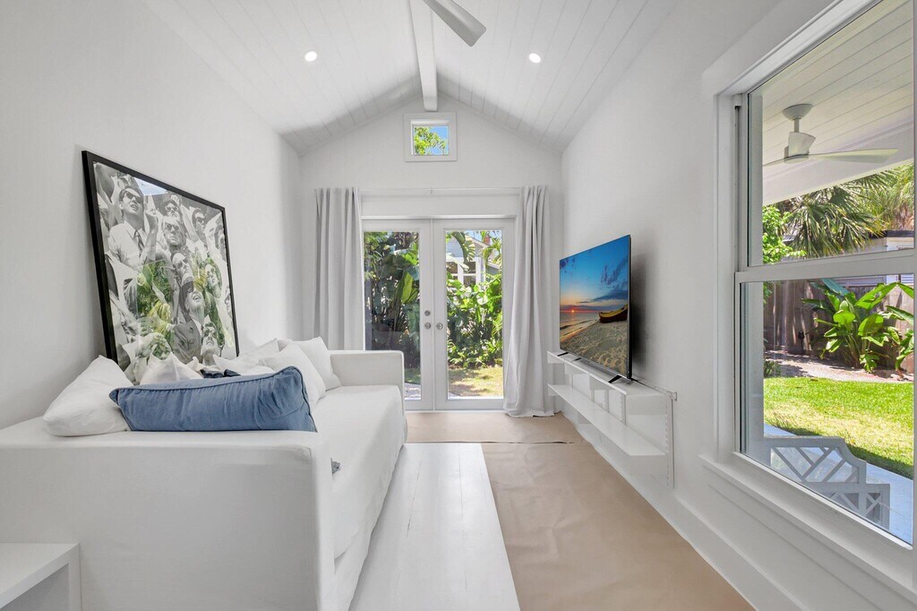 Annual furnished Rental. All new construction should be as nice as this. Just completed in 2025 - Be the first to reside/live there! Key West or Lake Worth Beach? It would be hard to tell sitting on your front extended covered patio. Outdoor private living at its finest. Vaulted ceilings with multiple impact windows and French doors for a light,bright & fresh appeal. Private rear entrance with a parking space. Comes furnished as seen at time of showing. Perfect location 2 blocks from the heart of downtown. Washer & Dryer. Additional storage area. All new Furnishings! Don't miss this! MLS ID R11123451