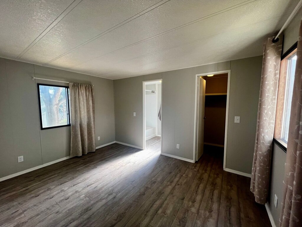 This comfy 3-bedroom, 2-bath manufactured home sparkles with an all-new kitchen, all-new bathrooms, and new flooring throughout! Primary bedroom features an en suite bathroom and walk-in closet. You'll find built-in drawers for easy storage in the other 2 bedrooms, which are located at the opposite end of the home. Outside in the fully-fenced yard you'll find a garden shed, a carport to keep your ride out of the weather, and mature trees creating a beautiful oasis of summer shade. Tenants responsible for yard care and all utilities. One-year lease required with month-to-month terms thereafter. A virtual tour of this property is linked here: