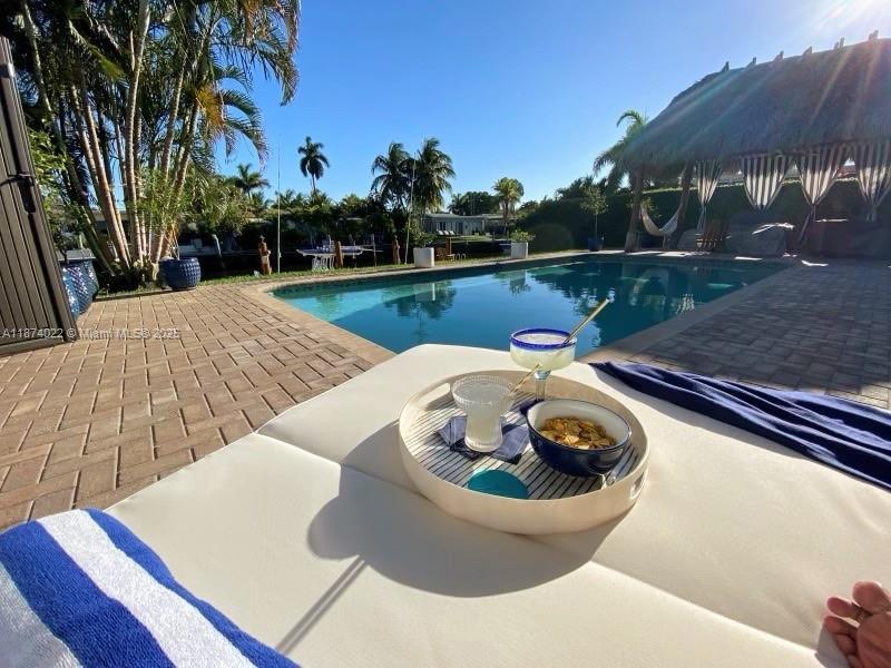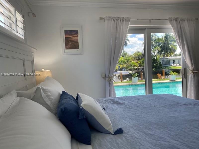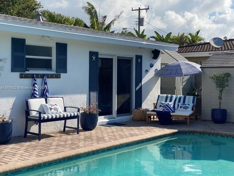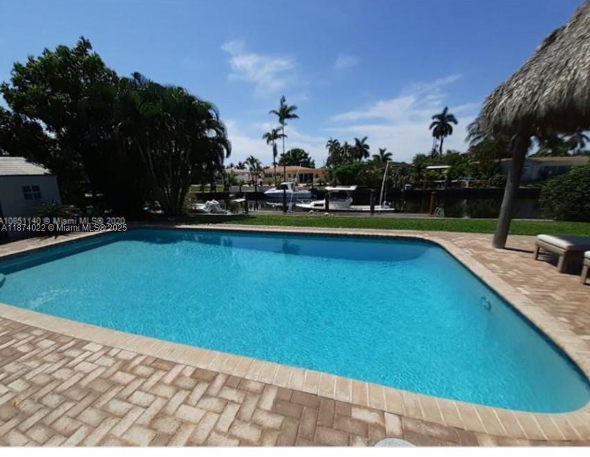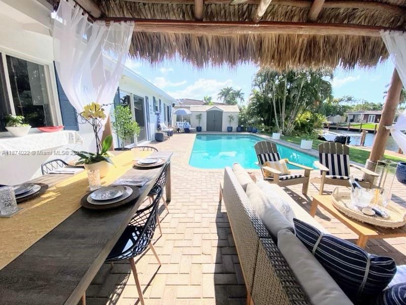 Waterfront pool dream home in East Pompano Beach w/ private boat dock. Renovated 3 BD/ 2BA pool home w/ an open floor plan, all impact windows & slider doors, full house generator. Upon entering you will see the amazing waterfront view. This property feels very spacious. Kitchen has lots of natural lighting & also water view. Florida room & master bedroom overlook the pool & dock. Luxury backyard retreat features a large saltwater pool, Tiki log hut, dock has water & 30amp service. Plantation shutters in front, filtered shades in back. Two Large storage units to store your toys. Security cameras, Large Circular paved private driveway. NO HOA. Close to Pompano Beach pier, Near A rated schools Calvary Christian Academy, Pine Crest & close to I-95, turnpike, and Holy Cross Hospital.