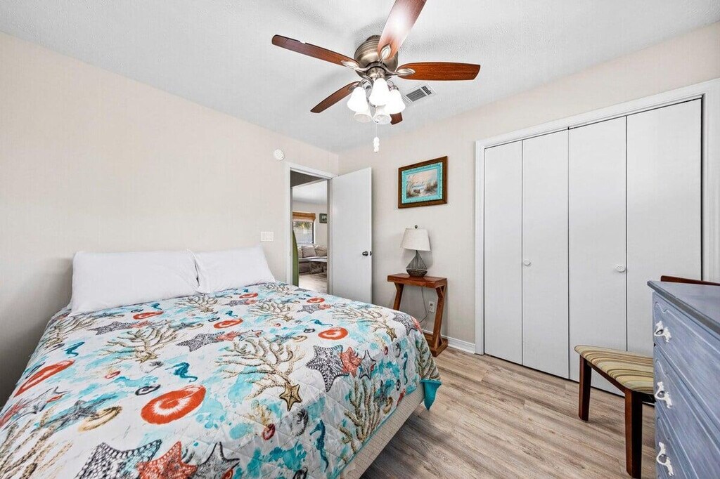 The advertised rate of $2,877/month is the lowest available price, based on a 1 month(s) stay with a move-in date of April 12, 2026. Rates vary depending on the duration of stay, season, and other parameters. For exact pricing and additional pricing components, please visit our website and enter your desired move-in and move-out dates. The rate is applicable when billed upfront; it can be higher if billed in multiple payments. Feel at home in this Panama City Beach retreat, a short 5-minute stroll from Beach Access #69. This inviting home offers comfortable accommodations for up to 10 guests. This home is equipped with an outdoor firepit, Adirondack chairs, an outdoor eating area, beach toys and chairs, a wagon for beach gear transportation, HDTVs in each room, a fully equipped kitchen, air conditioning, and a washer and dryer. Up to 2 dogs are welcome with prior approval and payment of a $100 pet fee. You can park up to a 28' boat/RV on site or 4 vehicles; some street parking is available. Explore the natural beauty of the area with a visit to the nearby Conservation Park, offering miles of hiking trails. Indulge in coastal cuisine at local favorites like Salty Sue's and Mike's Cafe and Oyster Bar, both within walking distance. Pier Park is just two miles away, featuring an array of shops, restaurants, and attractions like escape rooms and an amusement park. Lake Powell and Inlet Beach Gulf Access are perfect for paddleboarding and kayaking, while Gulf World Marine Park offers marine encounters just minutes away. Explore the bespoke luxury of Rosemary Beach, or make a splash at Shipwreck Island Waterpark and Frank Brown Recreational Park, all within easy reach. Pets are allowed with a fee of $100. Registration Number: 62740 [SI]