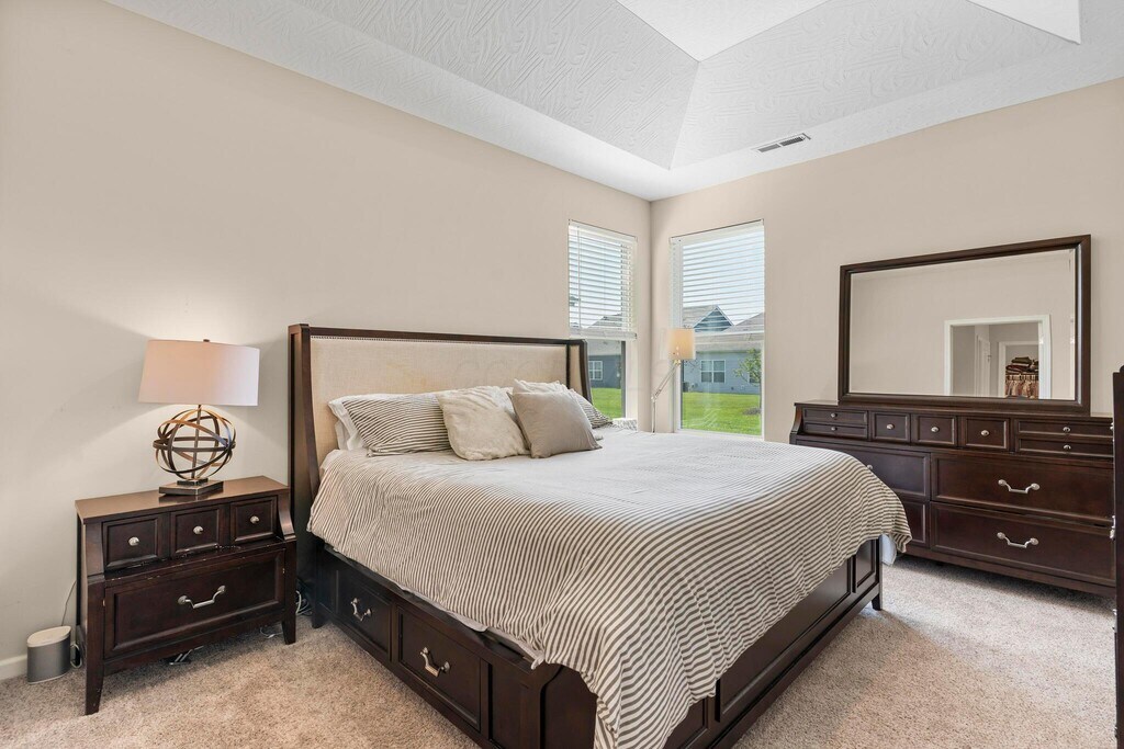 Inviting,low-maintenance ranch home located in the Broadmoore Commons community with lawncare covered in the HOA fees! Built in 2021,enjoy one level living at its finest with 9ft ceilings and canned lighting throughout,and an open concept between kitchen,dining area and living room. Kitchen features plenty of cabinet storage,stainless steel appliances,gas range and a pantry. Spacious main bedroom tucked away at rear of the property with tray ceiling and en-suite which includes walk-in tiled shower with bench,vanity with double sinks and walk-in closet. 2 additional bedrooms located at the front of the property with a full bathroom to share,perfect for guests or a home office. LVP flooring throughout. Attached 2-car garage. Relax on the covered concrete patio out back!