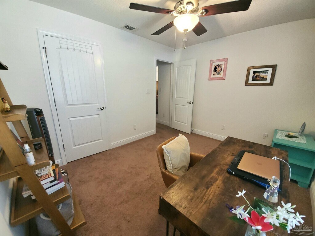 Situated on a beautiful corner lot in the quiet Autumn Meadows subdivision,this home offers both comfort and convenience just minutes from NAS Pensacola and about 15 minutes from Downtown Pensacola. Step inside to a bright entryway filled with natural light,with a bedroom to the right that also works perfectly as a home office or flex space. The home features a formal dining room and a spacious kitchen equipped with stainless steel appliances,a pantry,breakfast nook,and breakfast bar,all overlooking the large open living room — an ideal layout for everyday living and entertaining. A split-bedroom floor plan provides added privacy for the primary suite while keeping the additional bedrooms comfortably separated for family or guests. Enjoy the outdoors from the covered back porch,with a decorative iron fence along the back of the property that allows you to take in the natural surroundings. Virtual walkthrough available or schedule your showing today. Pets allowed with pet screening and owner approval only. Apply online. $75 App fee per adult,half off for active-duty military. Subject to credit check,background check,employment verification,and rental verification. CERTIFIED Funds required for move in!