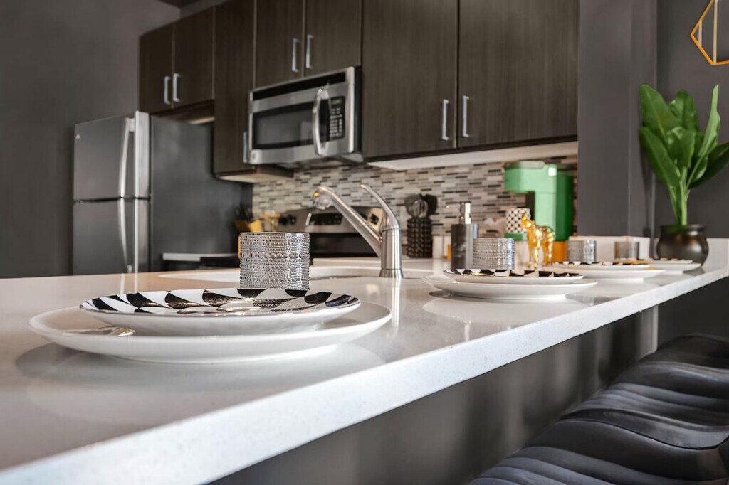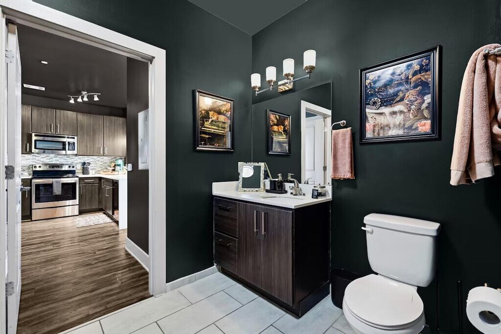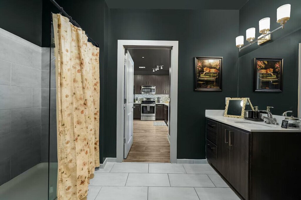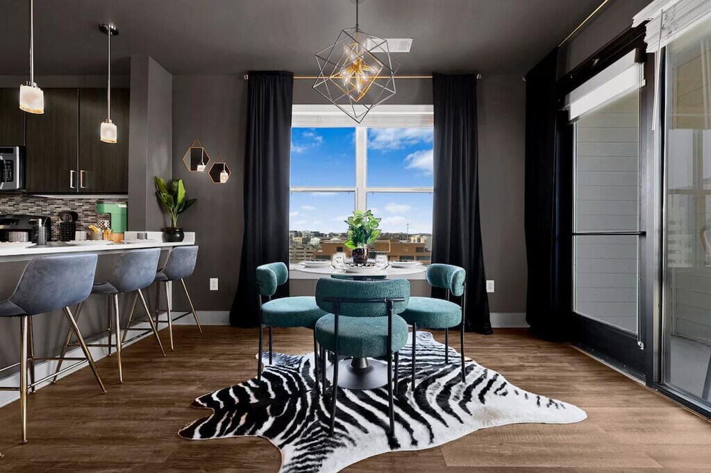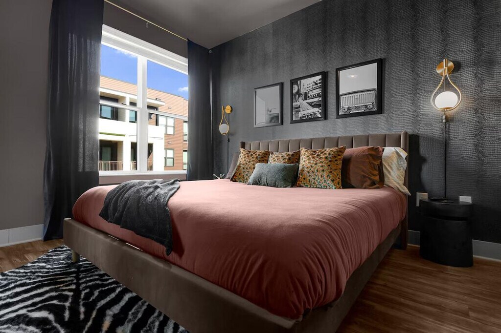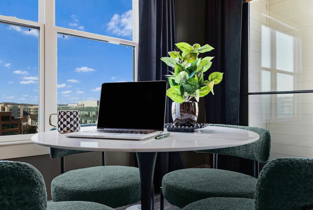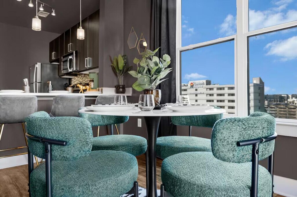 The advertised rate of $8,544/month is the lowest available price, based on a 30 day(s) stay with a move-in date of March 6, 2026. Rates vary depending on the duration of stay, season, and other parameters. For exact pricing and additional pricing components, please visit our website and enter your desired move-in and move-out dates. The rate is applicable when billed upfront; it can be higher if billed in multiple payments. Feel at home in this luxe, one-of-a-kind designed apartment in Nashville. This corner unit offers city views and features a king-size bed, daybed with trundles, and air mattresses to sleep up to 6 guests. The Green Room is a sophisticated sanctuary with every detail channeling the exclusive, intimate vibe of a backstage lounge. It features a signature gold-framed neon sign, a fully equipped gourmet kitchen with stainless steel appliances, a dedicated coffee station, a stunning corner dining nook with panoramic city views and a geometric gold chandelier, a dedicated vanity/glam station with an ornate gold arch mirror, Roku Smart TVs, a JBL Bluetooth speaker, in-unit washer and dryer, super-fast Wi-Fi, blackout curtains, and a private balcony with city and courtyard views. On-site parking is available for $25 per night. EV parking is also available for purchase on a first come first serve basis. Access to the resort-style pool and sun deck is seasonal, starting in May. You also have access to the 24-hour fitness center, outdoor firepit lounge, and billiard lounge and clubhouse. Located in a quiet and calm Midtown location, this apartment is close to everything that matters. It's across the street from Jimmy Kelly's Steakhouse and a short walk to Vanderbilt University and Centennial Park. A quick drive will get you to Music Row, Broadway, Bridgestone Arena, and the Nashville Airport. Please treat the space with respect. The partner is not responsible for the closure or unavailability of any of the shared amenities. Registration Number: STRP#: [SI]