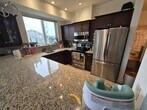 Beautiful 2 bed plus den, 2 bath top floor corner unit located in Shannon Lake. Stunning view of the lake, mountains, and golf course. Open concept with gourmet kitchen that includes granite tops, stainless appliances, dishwasher, and microwave. Large primary suite with ensuite. Hand scraped hardwood flooring throughout, updated lighting, in suite full sized laundry, and both bathrooms boast quartz countertops. Enjoy your oasis on the wraparound deck that takes full advantage of the pristine view and Okanagan sun. Unit comes with one underground parking stall and 2 storage lockers. Pool and hot tub are apart of your amenities. Guest suite also available. Walking trails to Shannon Lake right outside your door. 5 min drive to shopping, restaurants, and downtown Westbank. ** Utilities are INCLUDED ** NO smoking ** PETS may be negotiable for the right tenant ** Please go to our website for more info, pictures, a walkthrough video, and to APPLY ONLINE - www cityplex.ca