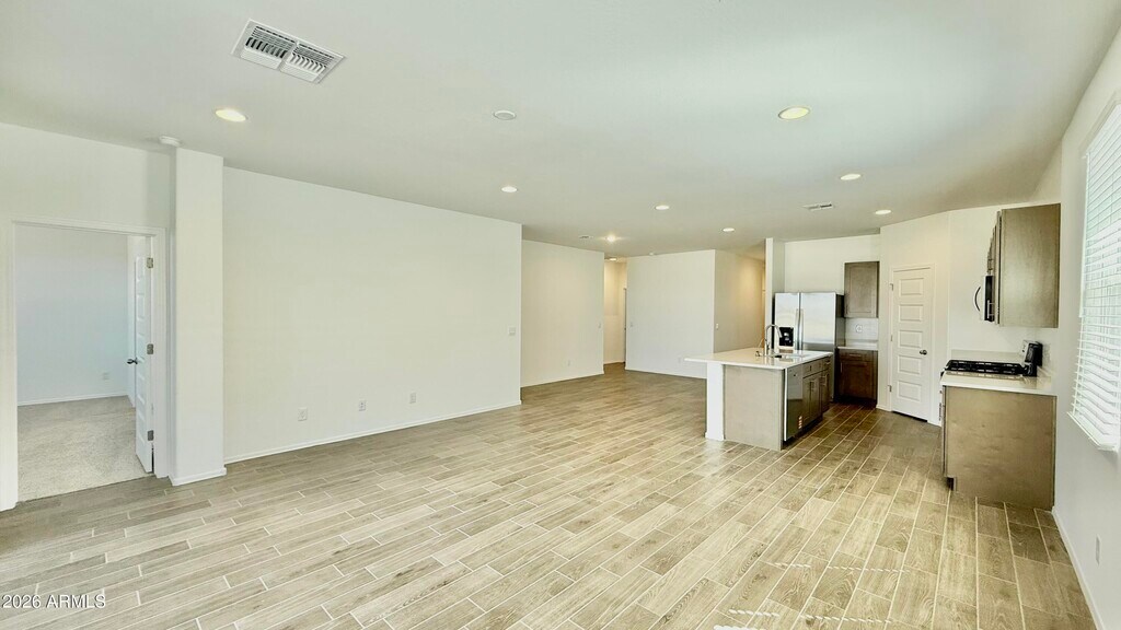 Step inside this stunning,brand-new 2,100 Sq Ft single story home in Maricopa's new development,Moonlight Community. Featuring 5 bedrooms,dining area with spacious living area,with all the conveniences a new home has to offer. Includes,all new refrigerator,microwave,dishwasher,and spacious countertop plus laundry room with washer and dryer. The primary suite showcases a walk-in closet and ensuite bath with dual sinks and step in shower. With centralized AC unit for year round comfort. Parking is easy with 2 car garage and generously spaced driveway. Step around to the backyard through side gate with wheelchair accessible walkway,paved to rear of the home. Opening up to a fully landscaped backyard,complemented by spacious Patio,Fire Pit and Luxury Turf and Green. The property sits on a premium lot with a wonderful panoramic Maricopa view. Additionally,the residents benefit from the newly developed entertainment facilities,which include a community pool,pickleball and sand volleyball courts,shaded play structures and ramadas,fire pit,great lawn,walking trails,green belts,tot lot,yard games and more. Multiple golf courses and Casino located nearby. Nestled in a prime Maricopa location,this home is conveniently located to schools,parks,dining,shopping and entertainment,offering an ideal combination of lifestyle and convenience.