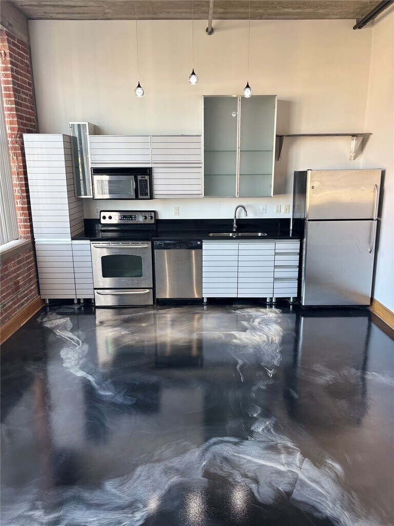 Welcome to this stylish 1-bedroom, 1-bath condo featuring luxury epoxy flooring throughout the unit. This condo has an in-unit washer and dryer, combining modern luxury with everyday convenience. Enjoy a bright, open layout, high ceilings, and plenty of natural light in a quiet, well-maintained building. Just steps from the soccer field, trendy restaurants like The Foundry, coffee shops, and nightlife, plus easy access to local colleges and downtown amenities, this unit puts the best of the city at your doorstep. Perfect for renters seeking a move-in ready, low-maintenance, modern loft lifestyle in a prime location!â€
