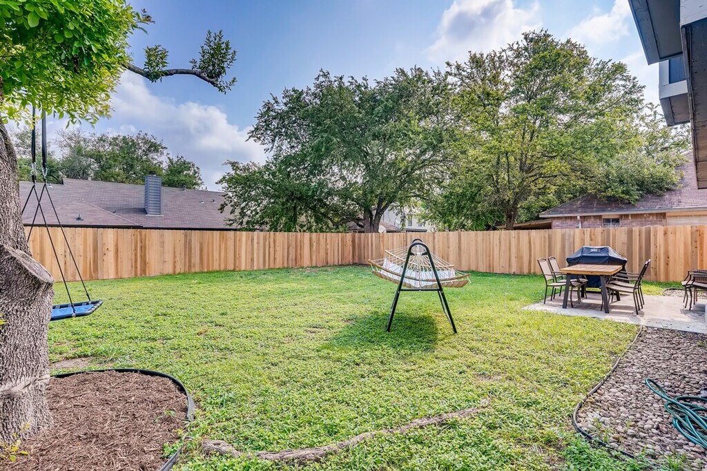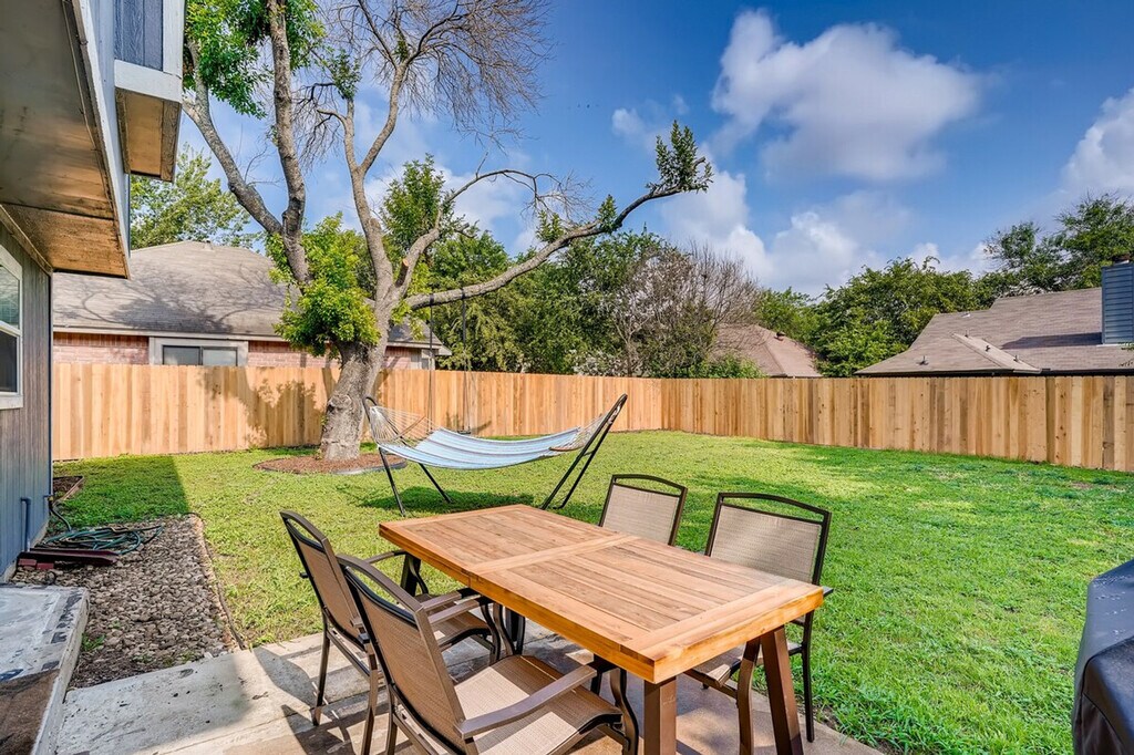 The advertised rate of $4,167/month is the lowest available price, based on a 30 day(s) stay with a move-in date of May 13, 2026. Rates vary depending on the duration of stay, season, and other parameters. For exact pricing and additional pricing components, please visit our website and enter your desired move-in and move-out dates. The rate is applicable when billed upfront; it can be higher if billed in multiple payments. Feel at home in this gorgeous home, fully set-up for long-term stays. This home features 3 bedrooms, beautifully renovated kitchen and bathrooms, 2 living areas, and a spacious backyard area in a peaceful neighborhood. This home is equipped for long-term stays with plenty of kitchen basics and supplies, towels, linens, a washer/dryer, and a barbecue grill. Each of the 3 bedrooms features comfortable beds. The primary bedroom retreat includes a king-size bed and oversized chair, as well as a 50-inch TV. The kitchen is newly remodeled and perfect for home-chefs, featuring a gas stove and a spacious kitchen island. A Keurig and a drip coffee maker are available. The second living room features a high-end and super-comfy couch and a 55-inch Smart Roku TV. A portable crib and high chair are available for families. One parking space is available in the garage, and you can also park in the driveway or on the street. Well-behaved, housebroken pets are welcome with a $200 pet fee per stay to cover extra cleaning. Enjoy easy access to Austin and all that Round Rock has to offer. This home is minutes from Dell Headquarters, Dell Diamond, Kalahari Waterpark and Resort, and the Play for All Abilities Park. Care for this home like you would your own. Out of respect for the neighbors, please no parties. Pets are not allowed on any furniture or beds. Please be mindful of barking, especially at night. The gas fireplace is not functional, so please do not use it. Fast Wi-Fi is available throughout the house, along with a modern desk space in the living room with a comfy chair and an optional desk/chair set-up that can be placed in one of the bedrooms. [SI]