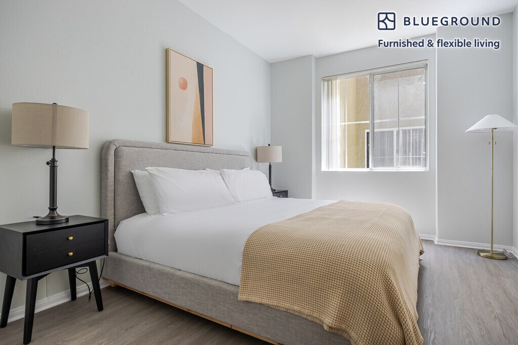 Show up and start living from day one in Los Angeles with this bright two bedroom Blueground apartment. You’ll love coming home to this thoughtfully furnished, beautifully designed, and fully equipped West Los Angeles home. (ID #LAX1360) The advertised rate of $3,510/month is the lowest available price, based on a 11 month(s) and 29 day(s) stay with a move-in date of January 7, 2026. Rates vary depending on the duration of stay, season, and other parameters. For exact pricing and additional pricing components, please visit our website and enter your desired move-in and move-out dates. The rate is applicable when billed upfront; it can be higher if billed in multiple payments. Brokers are welcome to reach out. Were you looking for an unfurnished lease? Try Blueground instead and upgrade from unfurnished to furnished living: - Furnished at rates comparable to unfurnished - No setup or furniture costs - save thousands - Move-in ready - save time, just bring your suitcase Designed with you in mind Thoughtfully designed with bespoke finishes, modern furnishings, and a fully equipped kitchen, you’ll enjoy that “I’m home” feeling with this Blueground apartment. Whether you’re lounging in your stylish living room streaming the latest and greatest entertainment on the smart TV or premium wireless speaker, or getting some well-earned rest on the superior quality mattress with luxury linens, you’ll fall in love with everything this West Los Angeles apartment has to offer. This apartment also offers in-floor laundry. Sleeping arrangements King Bed, 70.8in/180cm Queen Bed, 63in/160cm Amenities Building amenities unique to this two bedroom apartment include an on-site: - BBQ Area - Dryer of floor - Elevator - Washing machine on floor - Parking - Pets allowed Arrival and ongoing support The entire apartment is yours to enjoy! Throughout your stay, you’ll have access to our Client Experience team through the Blueground App. You can schedule additional cleanings, submit maintenance requests, and view our neighborhood recommendations with just a few taps. We’ll share all details upon confirmation of your stay. Other things to note Building amenities may have an extra cost. This Blueground apartment has flexible lease options, allowing you to book it for one month, a year, or more. Pets are welcome, though weight limits and breed restrictions apply and may incur fees. Parking is offered based on availability and is subject to a fee. We take great pride in ensuring every photo displayed is shot in our own units with our actual furnishings. That said, we regularly refresh our decor and furniture arrangement, which may differ from what’s pictured. [SI]