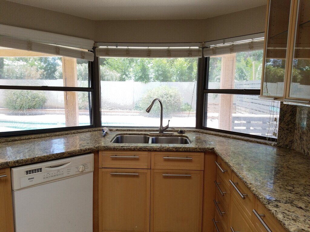 Nice three bedroom two bath home in desirable Mesa neighborhood. Landscaped backyard with sparkling pool. Pool service included in rent.