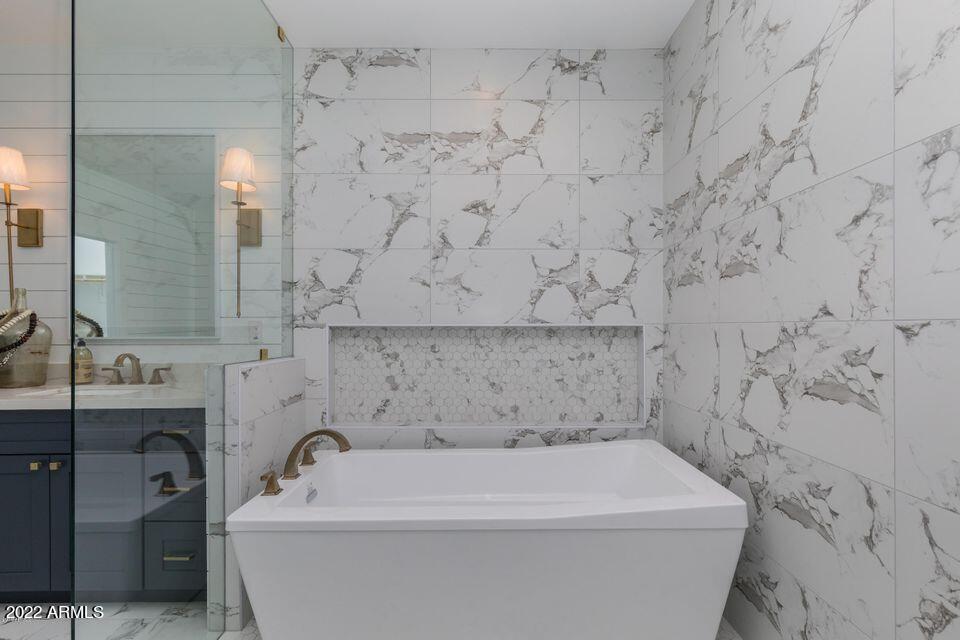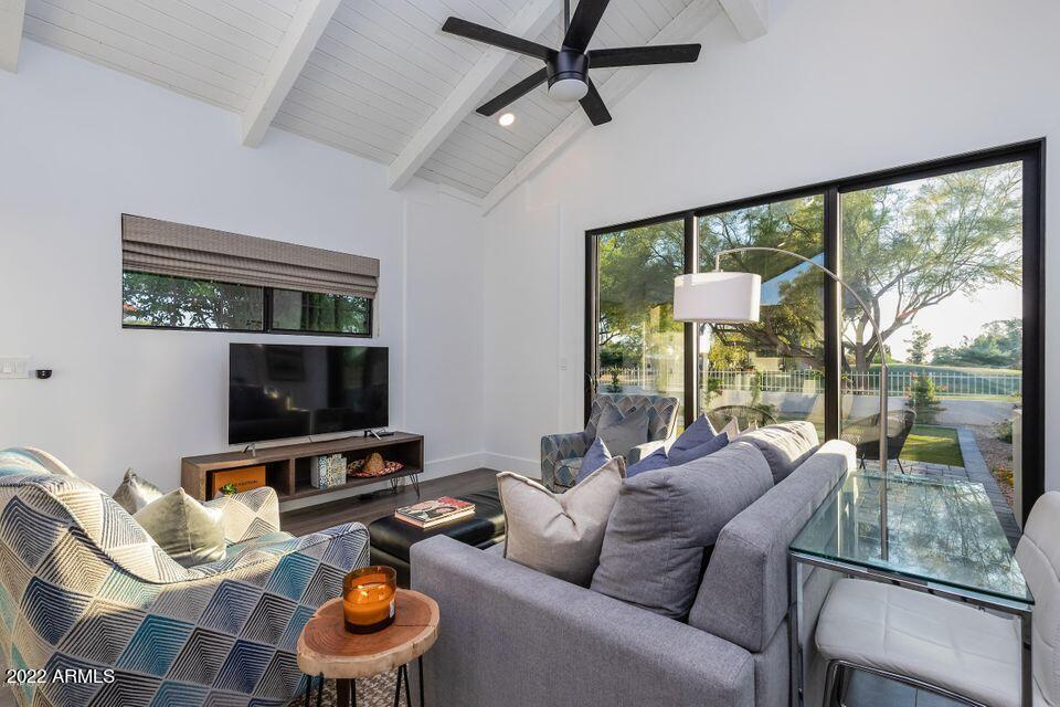 The ultimate retreat awaits you in this updated and highly upgraded furnished rental home with separate guest house in gated Pinnacle Peak Country Club Estates now available for discerning tastes. Offering golf course views from the professionally designed backyard with pool & spa,this incredible home flows with clean,contemporary finishes throughout including hard wood flooring,wood beam vaulted ceilings,premium appliances,quartz counters & much more. Ask about availability and seasonal rates of 6 month rental term or longer.
