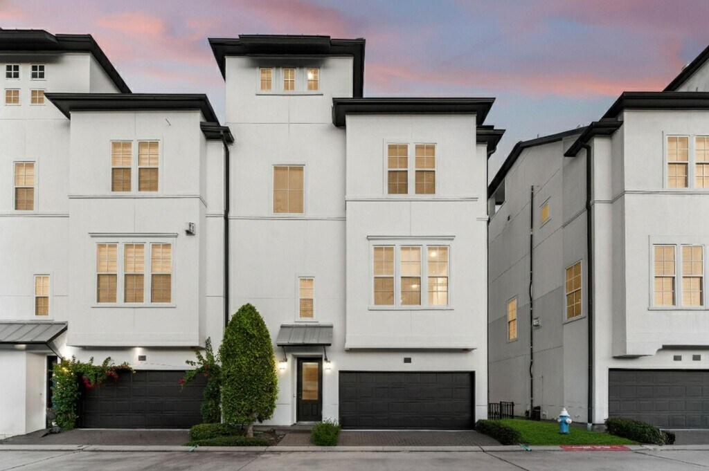 Versatile waterfront townhome in a private gated Spring Branch community featuring a 4th-floor flex space that can double as a second primary suite,home office,or media room! This residence offers water and skyline views from multiple levels. The open-concept second floor showcases 12’ ceilings,fireplace,and a chef’s kitchen with 6-burner gas cooktop,Bosch appliances,quartz counters,and soft-close cabinetry. Enjoy outdoor living on the large second-floor balcony,rooftop terrace,or private patio with gated green space and metal roof above it all. Each bedroom has an ensuite bath,with travertine and hardwood floors throughout. Ideally located minutes from the Galleria,Memorial City,CityCentre,and the Energy Corridor. MLS# 30211535