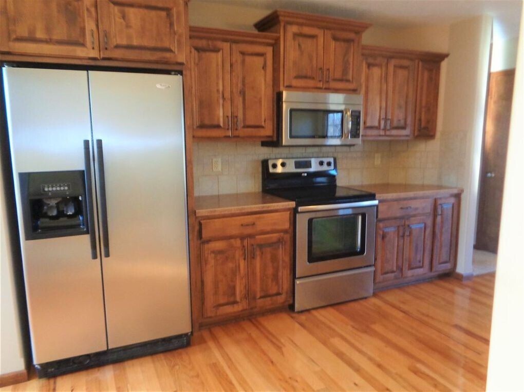 Don't miss the opportunity to move in to this beautiful open floor plan, bi-level 4 bedroom, 3 bath home with over 2,600 sqft of living space! A spacious living room with a vaulted ceiling opens to a beautifully hard wood floored dining area, eat in kitchen and breakfast bar area for additional seating. A gorgeous and updated kitchen with stainless steel appliances and beautiful dark cabinetry add much character to this space ~ dining and cooking will be a joy! Large master suite features spacious room, walk-in closet and an amazing master bath - dual vanities, jetted tub & separate showers. There are 2 additional bedrooms and a full bath on the main level. The lower level offers a spacious family room with fireplace, fourth bedroom with walk-in closet and the 3rd bathroom. This home has been very well cared for and will make it's tenant's more than welcome! Contact Mathis Lueker Property Management to schedule your showing!