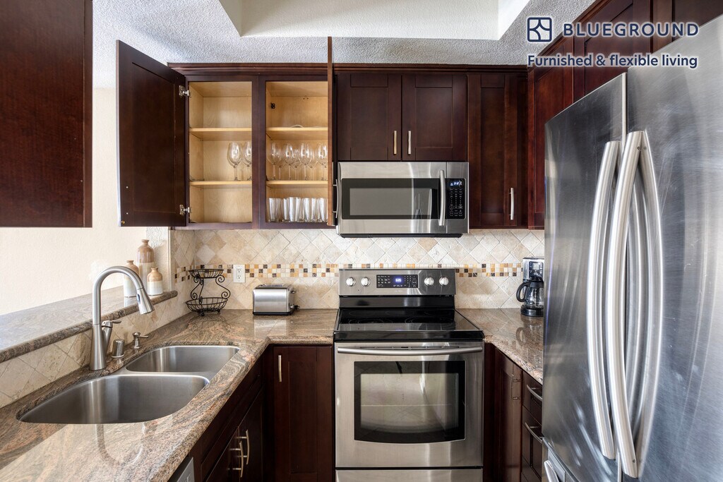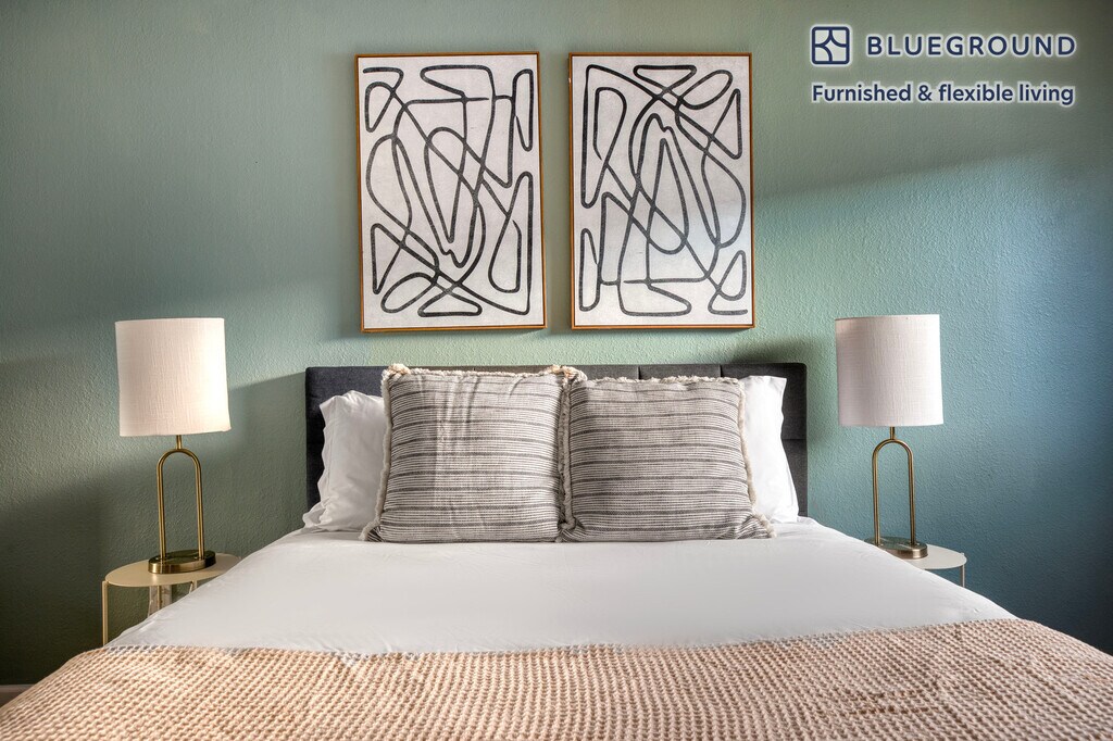 Show up and start living from day one in San Diego with this sophisticated two bedroom Blueground apartment. You’ll love coming home to this thoughtfully furnished, beautifully designed, and fully equipped Mission Valley East home. (ID #SAN43) The advertised rate of $2,530/month is the lowest available price, based on a 1 month(s) and 29 day(s) stay with a move-in date of February 4, 2026. If you’re looking for a 1-year stay, the rate is $3,520/month. Rates vary depending on the duration of stay, season, and other parameters. For exact pricing and additional pricing components, please visit our website and enter your desired move-in and move-out dates. The rate is applicable when billed upfront; it can be higher if billed in multiple payments. Brokers are welcome to reach out. Were you looking for an unfurnished lease? Try Blueground instead and upgrade from unfurnished to furnished living: - Furnished at rates comparable to unfurnished - No setup or furniture costs - save thousands - Move-in ready - save time, just bring your suitcase Designed with you in mind Thoughtfully designed with bespoke finishes, modern furnishings, and a fully equipped kitchen, you’ll enjoy that “I’m home” feeling with this Blueground apartment. Whether you’re lounging in your cozy living room streaming the latest and greatest entertainment on the smart TV or premium wireless speaker, or getting some well-earned rest on the superior quality mattress with luxury linens, you’ll fall in love with everything this Mission Valley East apartment has to offer. This apartment also offers in-apartment laundry. Sleeping arrangements King Bed, 70.8in/180cm Queen Bed, 63in/160cm Amenities Building amenities unique to this two bedroom apartment include an on-site: - Dryer - Swimming pool - Washing machine - Parking Arrival and ongoing support The entire apartment is yours to enjoy! Throughout your stay, you’ll have access to our Client Experience team through the Blueground App. You can schedule additional cleanings, submit maintenance requests, and view our neighborhood recommendations with just a few taps. We’ll share all details upon confirmation of your stay. Other things to note Building amenities may have an extra cost. This Blueground apartment has flexible lease options, allowing you to book it for one month, a year, or more. Parking is offered based on availability and is subject to a fee. Please keep in mind that this is a walk up building. We take great pride in ensuring every photo displayed is shot in our own units with our actual furnishings. That said, we regularly refresh our decor and furniture arrangement, which may differ from what’s pictured. Also note - The apartment's fireplace is for decorative purposes only [SI]