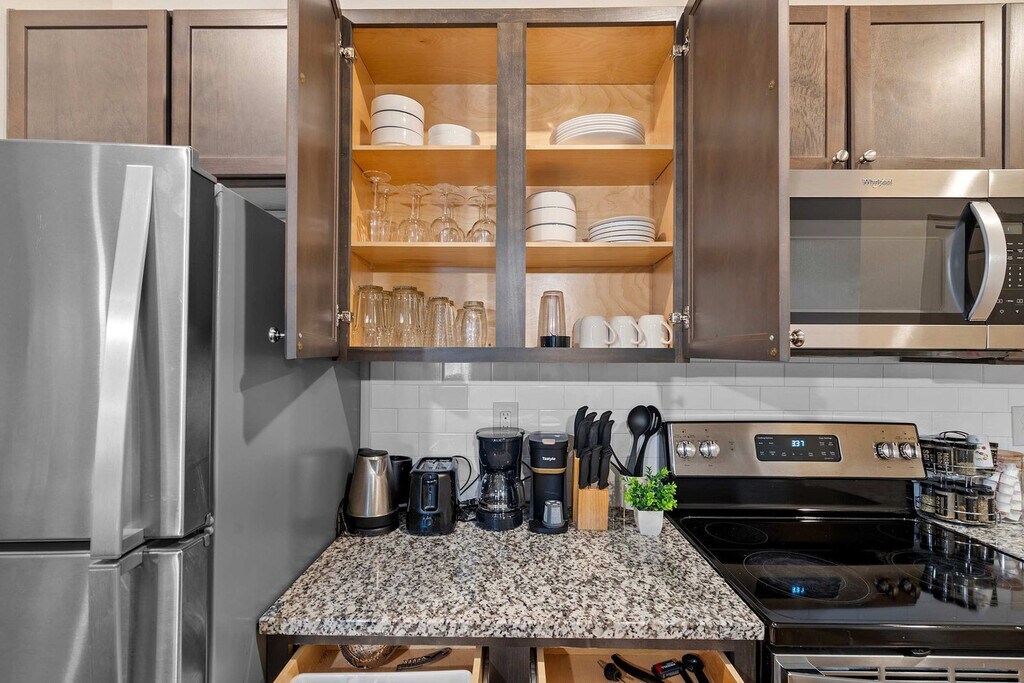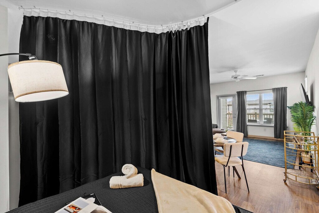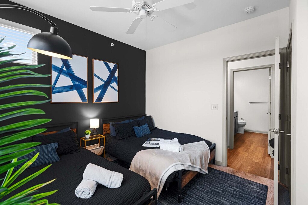 Feel at home in this classy 1311 sq. ft 4-bedroom, 2-bathroom apartment in Charlotte, minutes from Uptown Charlotte and steps from restaurants, cafés, bars, and shops. This apartment features a fully equipped kitchen, a convertible sleeper couch, and luxury amenities designed for longer stays. The open-concept living area is elegantly furnished with plush seating, a 55” Smart 4K TV, and elegant décor. The kitchen is fully stocked with stainless steel appliances, cookware, and dinnerware. Enjoy complimentary coffee, tea, sugar, creamer, and sweeteners at the coffee and tea bar. The modern bathrooms are equipped with high-pressure rainfall showers, plush towels, essential toiletries, and a hair dryer. An in-unit washer and dryer with detergent are also available. Free on-site parking is available on a first-come, first-served basis. Quick access to Uber, Lyft, and local transit is also available. Situated in a vibrant neighborhood, this apartment places you within minutes of top attractions, dining, and nightlife. The NASCAR Hall of Fame, Discovery Place Science, and Bank of America Stadium are all around a 10-minute drive. Carowinds Amusement Park is about a 25-minute drive, and the U.S. National Whitewater Center is about a 20-minute drive. Quiet hours are strictly enforced from 8:00 PM to 8:00 AM. During this time, guests must keep noise to a minimum. If noise levels exceed 80 decibels for more than 10 consecutive minutes, guests will be fined $2,500, removed from the property immediately, and their reservation will be canceled without refund. Smoking is strictly prohibited anywhere on the premises, including inside the unit, on balconies or patios, and in shared or public spaces. If a smoke detector is tampered with, disabled, or triggered due to smoking, guests will be fined $2,500 and removed from the property immediately without refund. Unauthorized guests will result in a $500 fine per person, immediate removal from the property, and cancellation of the reservation without refund. Bringing undisclosed pets into the unit may result in a minimum $500 fine and cancellation of your stay without refund. Includes a dedicated workstation with a standing desk and fast Wi-Fi (300+ Mbps). [SI]
