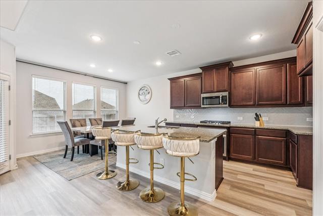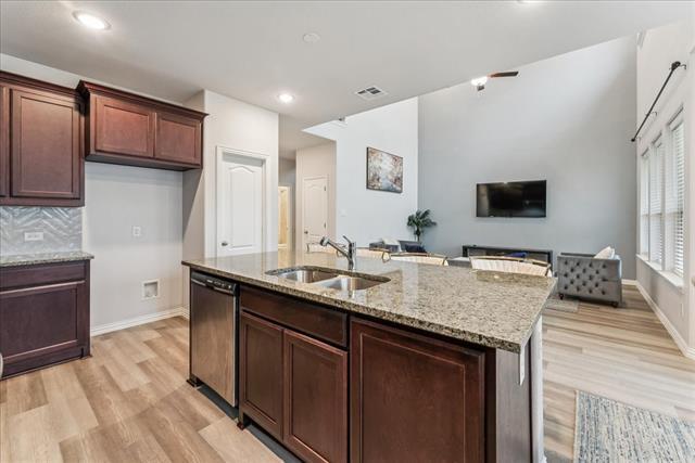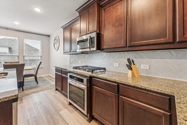 Comfort meets convenience in the heart of South Pointe, Mansfield’s premier master-planned community. 2203 Lannister St. is a 5-bedroom, 3.5-bathroom home offering 2,800+ square feet of thoughtfully designed space on a 5,489 sq ft lot, perfect for those craving a balance of modern living and community charm. As you arrive, the striking brick exterior and clean landscaping set the tone. Step inside to soaring ceilings, wide-plank flooring, and a sunlit open floor plan that flows effortlessly from the entryway to the living room, where a sleek gas log fireplace becomes the cozy centerpiece. The gourmet kitchen is ready for your next dinner party or Sunday breakfast, featuring granite countertops, a gas cooktop, stainless steel appliances, and a spacious island with stylish bar seating. The main-level primary suite offers a spa-style ensuite bath, soaking tub, glass-enclosed shower, and an oversized walk-in closet. Upstairs, an additional living space provides flexibility for a media room, lounge, or play area. Out back, a large fenced yard gives you endless possibilities—garden, grill, or simply unwind under the covered patio. Living in South Pointe means more than just a beautiful home—residents enjoy access to scenic walking trails, playgrounds, community pools, stocked fishing ponds, and serene green spaces. With easy access to major highways, shopping, dining, and entertainment, everything you need is right around the corner. Mansfield ISD is known for its strong academic programs, modern facilities, and community involvement—making it a top choice for growing households. Whether you're looking to buy or lease, this home offers the lifestyle you've been searching for in a location you’ll love coming home to. Schedule your private tour today!