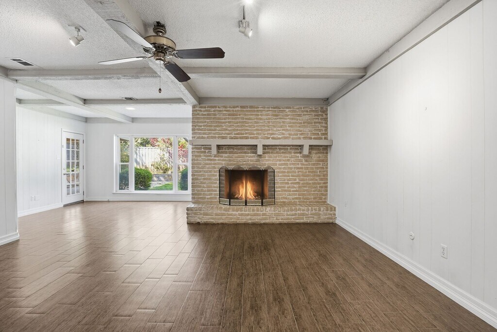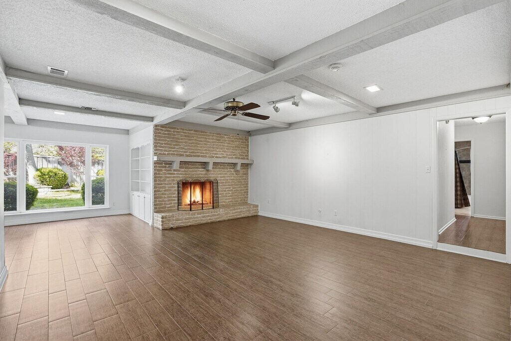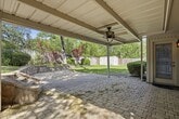 Discover this updated 3-bedroom, 2-bath home! Pet Friendly! Featuring modern finishes and abundant natural light throughout. The kitchen is equipped with stainless steel appliances, a cooktop, double oven, range and dishwasher, plus a cozy breakfast nook. A fireplace adds warmth to the living area, and the oversized patio overlooks a peaceful backyard. The primary suite includes an ensuite bath, while secondary bedrooms offer good-size closets. Additional storage is available in a large storage building. Contemporary updates and thoughtful storage make this residence a comfortable, move-in-ready option. Close to major highways, shopping and schools.