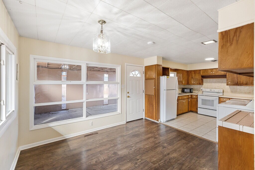 Welcome to this cozy and inviting 3-bedroom, 1-bathroom home located in a quiet neighborhood in central Colorado Springs. With approximately 1,100 sqft of living space, this home offers a comfortable layout and practical features ideal for everyday living. Inside, you'll find a bright living area that flows into a functional kitchen equipped with essential appliances and plenty of cabinet space. The three bedrooms provide flexibility for family, guests, or a dedicated home office. Tile and vinyl flooring throughout help create a clean and low-maintenance interior. The home includes washer and dryer hookups for convenient in-home laundry and is heated with forced-air heating for year-round comfort. Outside, the property features a detached garage and additional yard space, offering room for parking, storage, or outdoor relaxation. This home is a great opportunity for renters seeking affordable space, a private yard, and a garage in a well-established neighborhood.