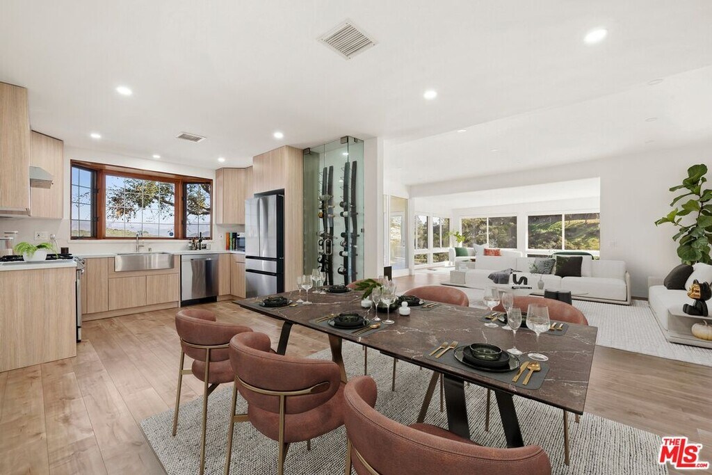 Welcome home to this wonderful Lookout Mountain location offering sweeping views that stretch from lush canyons, mountains, and hills to iconic landmarks such as the Hollywood Sign and Griffith Observatory. Extensively remodeled and updated with quality finishes and fresh landscaping, this excellent home is move-in ready and available immediately. Experience fantastic vistas from the grassy backyard, complete with fire pit and sun deck beneath a towering shade tree. Optimized for indoor-outdoor living, the family room includes sliding glass doors to the outside and is filled with natural light by giant picture windows at every turn. The adjacent living room is roomy and centered by a striking stone fireplace. Wide-plank floors flow into the open-concept dining room and kitchen which features stainless-steel appliances, farm sink, garden window, and elegant wine storage. The primary suite has glass-paned accordion doors that fold to provide rear access amidst popping views, and its en-suite bath has a dual-sink vanity, rainwater shower, and soaking tub. Secondary bedrooms and bathrooms are also updated and spacious. This coveted neighborhood is central to both Westside and Valley, close to film studios, and just moments to the fine restaurants, shopping, and entertainment of West Hollywood, the Sunset Strip, and Beverly Hills. Also located within the attendance boundaries of award-winning, 10-rated Wonderland Avenue Elementary. Some photos are virtually staged. MLS# 26636627