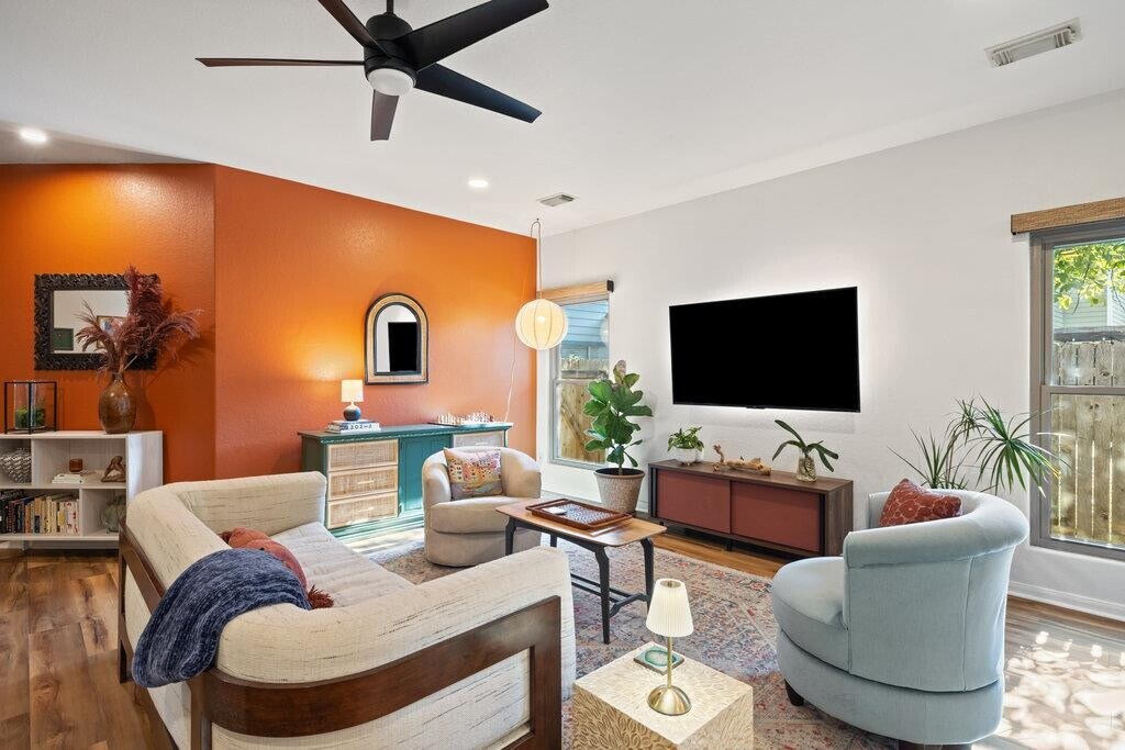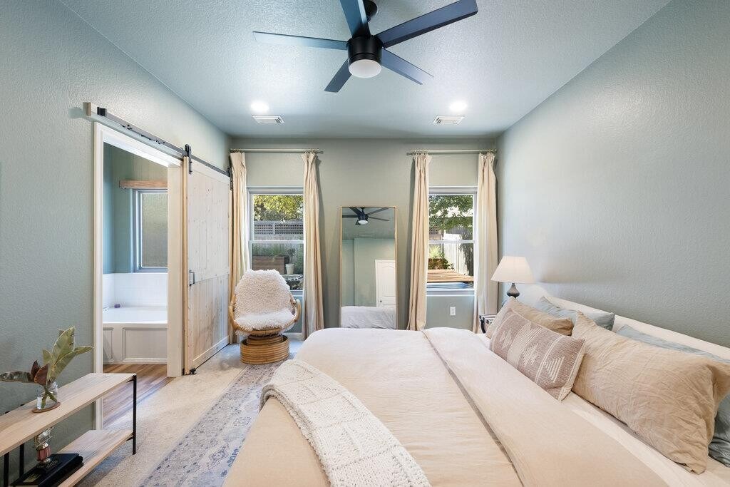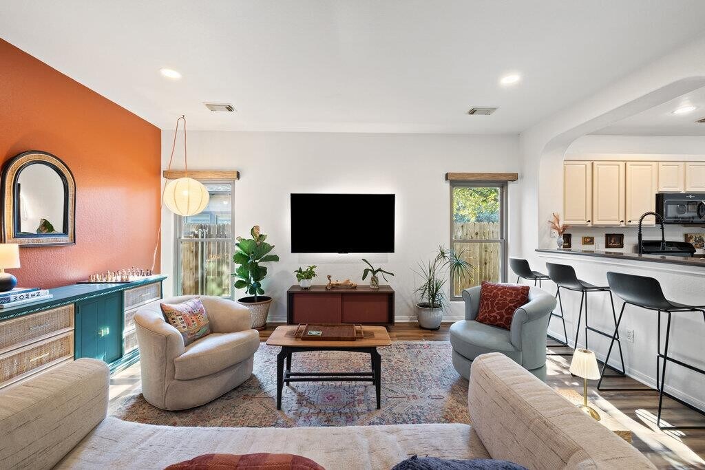 FOR LEASE: South Austin Gem - Where Convenience Meets Comfort Welcome to 2205 Amur Dr, a beautifully maintained 3-bedroom, 2.5-bath home in South Austin’s desirable 78745 zip code. Featuring a renovated half bath, expanded laundry/mudroom with built-ins, and a backyard HOT TUB, this property feels more like a private retreat than a rental. Both the front and back yards are professionally landscaped and fully maintained for effortless living. The kitchen includes a center island with fluted wood trim, custom cabinets with added storage, and pull-out shelving throughout. It opens to the dining and living areas, where recessed LED lighting, custom programmable window coverings, and sliding glass doors connect to the covered patio and generous deck. The primary suite offers a peaceful escape with a walk-in closet, dual vanity, soaking tub, and walk-in shower. Two additional bedrooms and a full bath sit at the front of the home, providing flexibility for guests, family, or a home office. New ceiling fans and recessed lighting bring comfort and style to every room. Step outside to enjoy a backyard sanctuary with native landscaping, xeriscaped side yards, mature trees, a generous deck, and a private hot tub. With the HOA maintaining the front yard and the landlord providing landscaping for the back, outdoor living is completely carefree. This South Austin rental is just 2 miles from Central Market South Lamar and 4 miles from Zilker Park. You’re also minutes from downtown Austin, UT, the airport, and major employers including Tesla, Apple, Oracle, Samsung, and Q2 Stadium. Additional upgrades include custom paint and wallpaper, programmable window coverings from 3-Day Blinds, cabinetry around the refrigerator, a renovated half bath with custom tile, an expanded laundry room with drying racks, a hidden-entry cat cabinet, recessed LED lighting, new ceiling fans, and a new roof (2025).