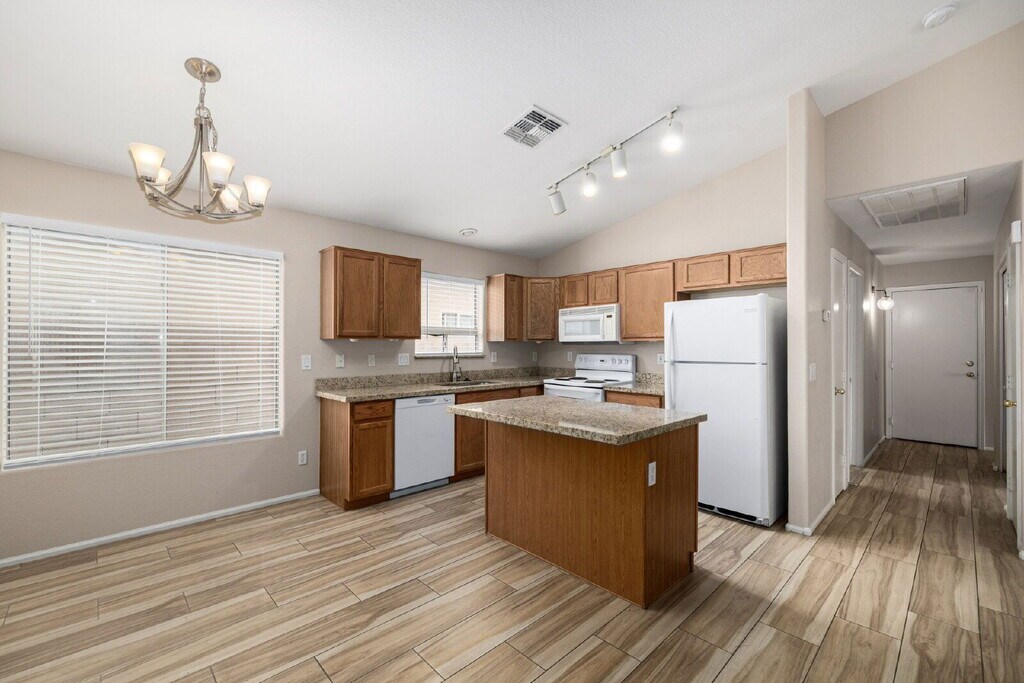 This cozy home is located in the desirable community of Crystal Gardens. The home offers has a split bedroom floor plan, the kitchen is perfect for entertaining guests with an open concept to the living area, plenty of counter and storage space, granite counter tops Home and energy star appliances in kitchen, Wood look tile throughout house, with carpet in the bedrooms. Landscaping in front and back. By submitting your information on this page you consent to being contacted by the Property Manager and RentEngine via SMS, phone, or email.