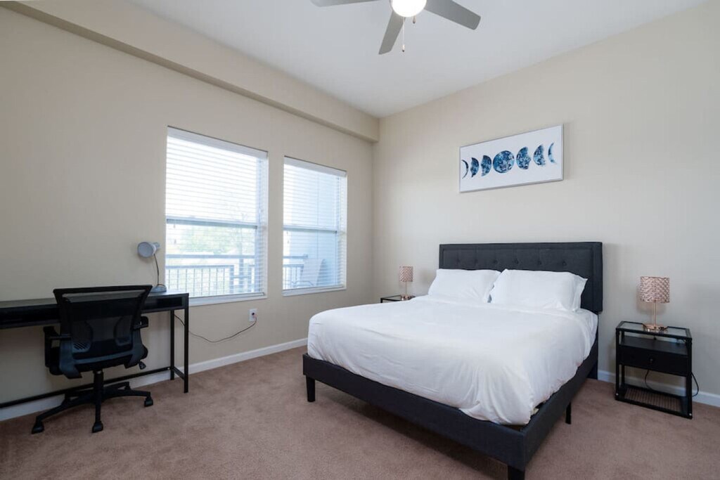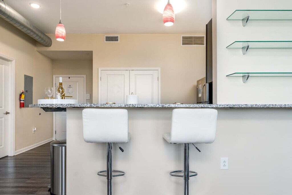Feel at home in this professionally decorated, centrally located elegant apartment in downtown Indianapolis. With floor-to-ceiling windows offering a great view of the city, this well-lit space is perfect for watching the sunset. The apartment is suitable for business travelers and remote workers, featuring an office desk, chair, and fiberoptic Wi-Fi. The fully stocked kitchen is ideal for those who enjoy cooking, or you can explore a long list of local dining options. This space is great for traveling consultants and perfect for a longer stay. This apartment comes with one queen bed with a gel memory mattress, two firm and two soft pillows, and a couch. It has almost everything you need for your stay, including a washer and dryer, stainless steel appliances, a walk-in closet, and free fast optic fiber Wi-Fi with unlimited HBO Max. Guests have access to the rooftop lounge. Only registered guests can use the amenities, and they are not for commercial use. Located in downtown Indianapolis, you will be spoiled for choices of where to eat or shop. The building is relatively new and offers easy access to various attractions. Visit the Indianapolis Museum of Art, explore the Indianapolis Zoo, or discover the Children's Museum of Indianapolis. Stroll through the White River State Park or enjoy a performance at the Indiana Repertory Theatre. Broad Ripple Village offers a vibrant neighborhood experience with its eclectic mix of shops, restaurants, and nightlife. Public transportation is available through IndyGo buses, and ride-sharing services like Uber and Lyft are also an option. Indianapolis is bike-friendly, and walking is a great way to explore the city. This is a self-check-in apartment, accessible from the main entrance. All amenities can be used by guests, but please be respectful of others while using shared amenities. There is a $100 penalty fee for removing smoke detectors. Smoking is strictly prohibited inside or outside on the patio or balcony, parking lot, or within 50 feet of the property, with a fine of $300 for violations. Parties and events are strictly prohibited, with a fine of $500 for violations, legal action, and possible eviction without reimbursement. Unauthorized pets incur a $250 fee. Missing or damaged items will be charged at direct replacement cost plus a fine of up to $300. Towels and linens must be kept in good condition, and guests should not wash comforters or duvet comforters themselves. Breaking house rules can result in a fine of up to $1000 and/or eviction. Noise can transfer easily to neighbors through walls and floors. The apartment is remote work-friendly, featuring an office desk, chair, and fiberoptic Wi-Fi. A laptop computer is not included.