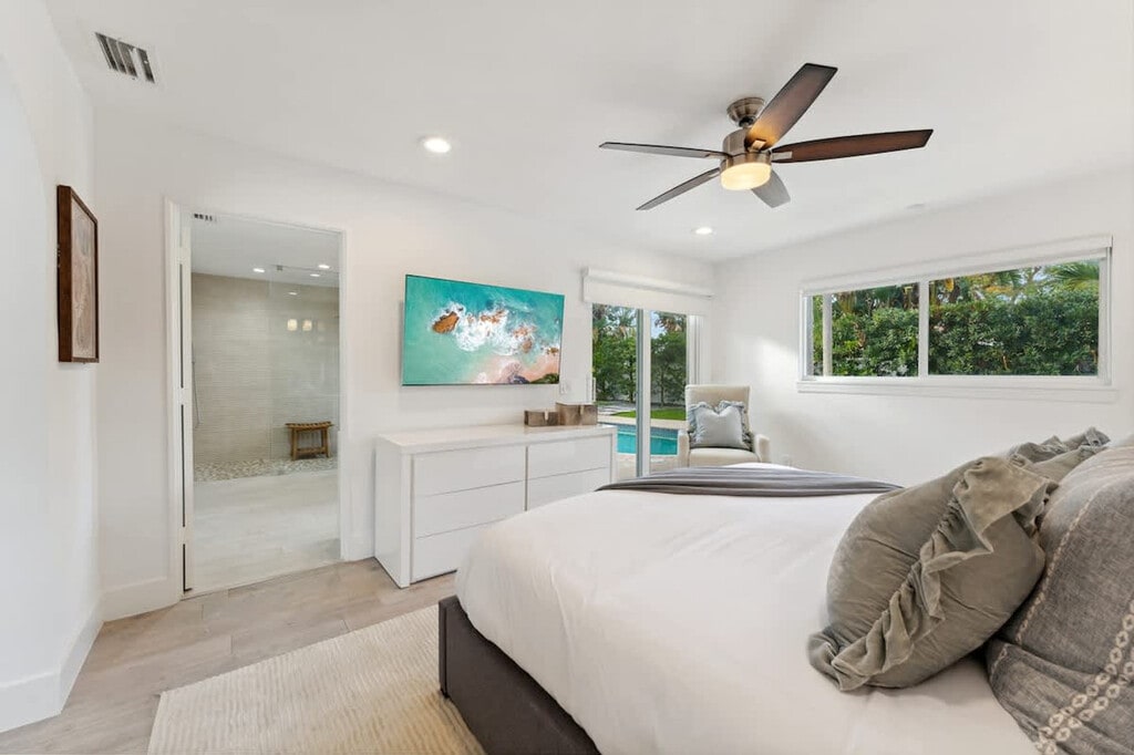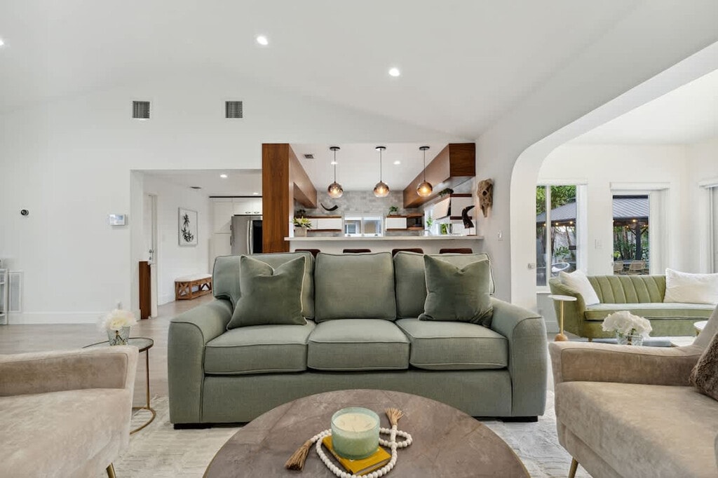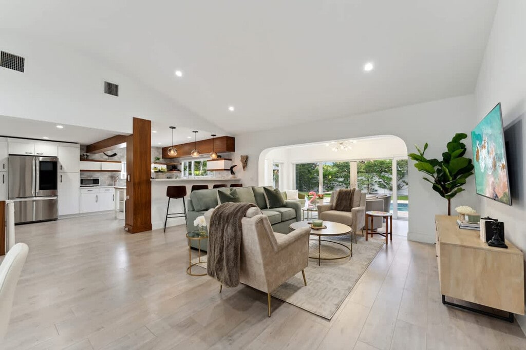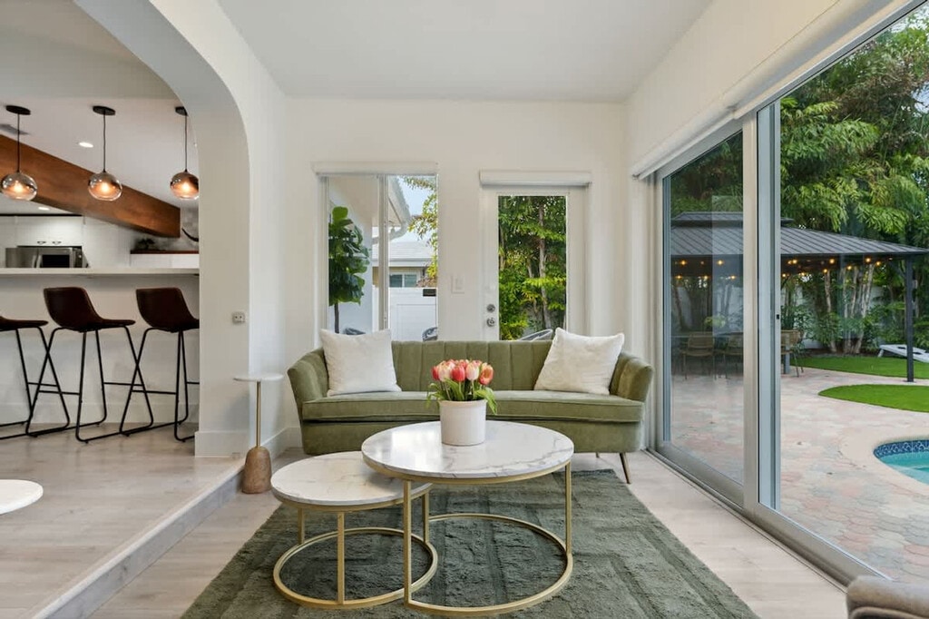 Feel at home in this resort-style coastal retreat in Lighthouse Point, located in a safe, upscale neighborhood just minutes from top Florida beaches, dining, and shopping. This immaculate 3-bedroom, 2-bathroom home features a spacious open-concept layout. Designed for comfort and style, this coastal home offers a peaceful getaway. The open-concept living and dining area is perfect for group gatherings. The fully stocked kitchen has everything you need to prepare meals. Enjoy smart TVs in every room with streaming services and fast high-speed Wi-Fi. Board games are available for rainy days or family fun. Step outside to your private heated pool oasis, unwind by the fire pit, or enjoy outdoor dining under a string-lighted gazebo with a BBQ grill. A pack-n-play can be provided for an additional fee of $150, subject to location and availability. Perfectly positioned in the heart of Lighthouse Point, this home gives you easy access to everything South Florida has to offer. It's 5 minutes to Lighthouse Point Marina, 25 minutes to Fort Lauderdale-Hollywood International Airport, and 20 minutes to both Deerfield Beach and Fort Lauderdale Beach. Endless restaurants, shopping, and entertainment are just minutes away. [SI]