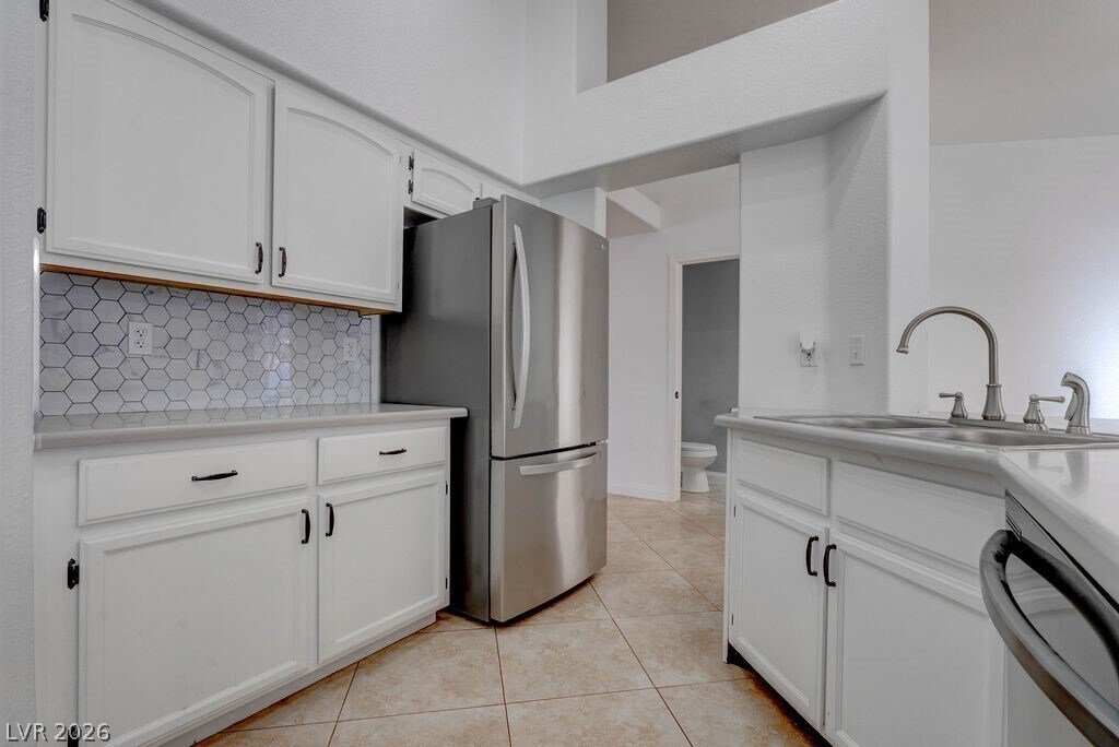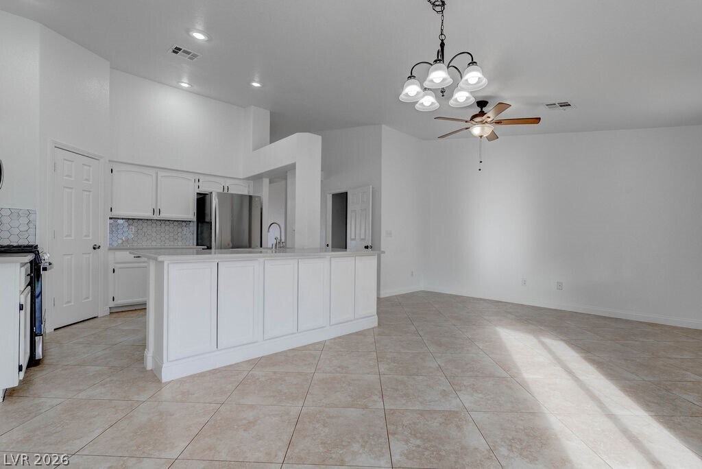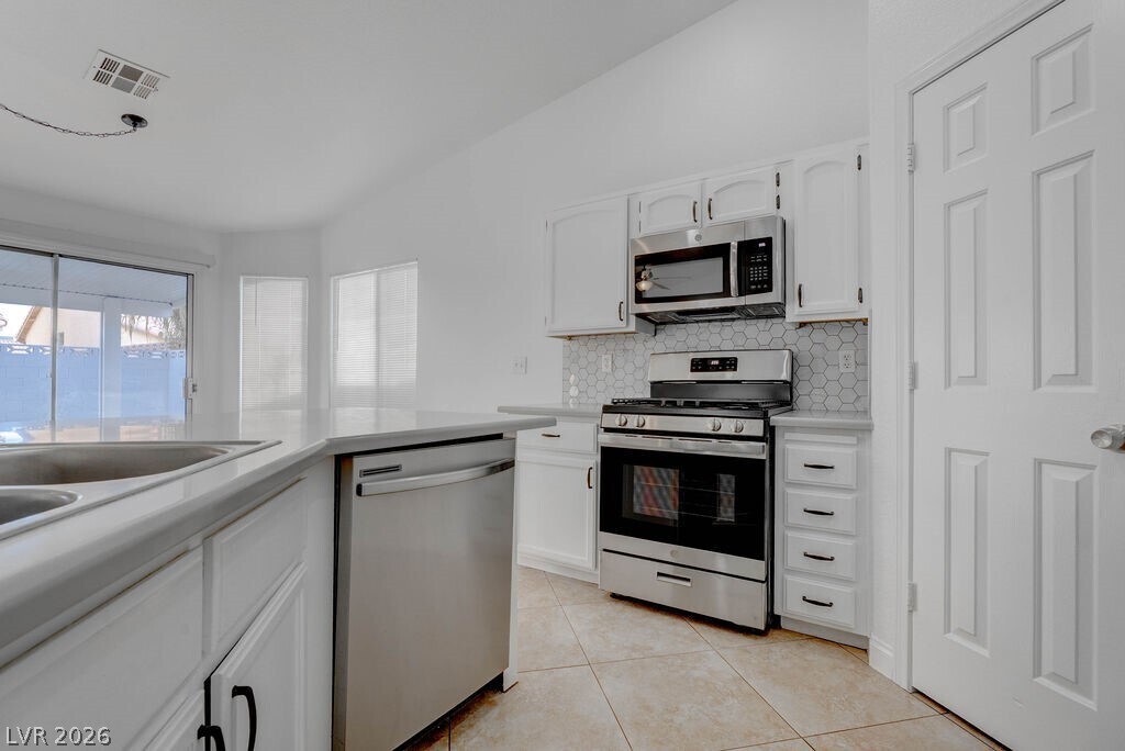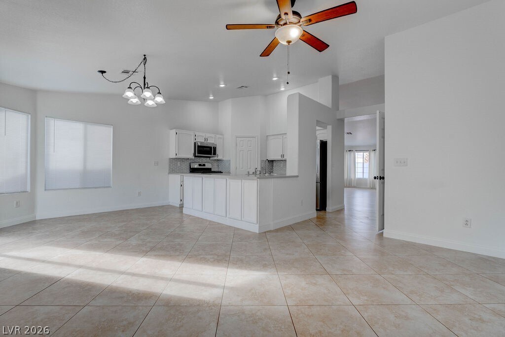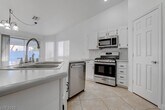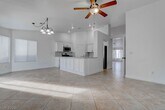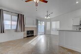 Welcome home to this stunning single-story residence in Desert Horizons, offering 4 spacious bedrooms and soaring vaulted ceilings that create an open, airy feel throughout. The thoughtfully designed floor plan features an inviting front living room and a separate family room that flows seamlessly into the dining area and well-appointed kitchen, complete with a breakfast counter, stainless steel appliances, and a pantry for ample storage. All bedrooms include ceiling fan lights for year-round comfort, while two secondary bedrooms share a convenient Jack & Jill bath. The private primary suite boasts a large walk-in closet, dual vanities, a soaking tub, separate shower, and direct backyard access. Enjoy a low-maintenance yard with a covered patio—ideal for relaxing or entertaining. Additional perks include a 2-car garage and NO HOA, all with easy access to shopping, dining, and schools.