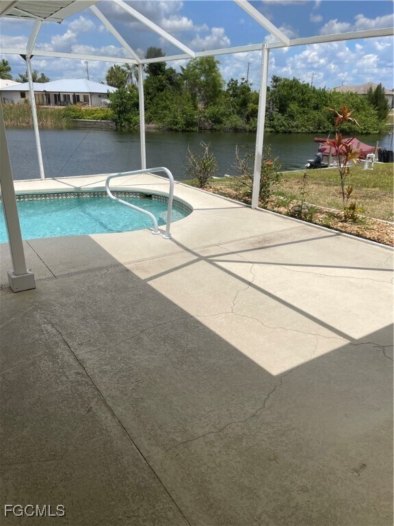 Fabulous water front pool home with an incredible view straight through to the very large lanai. There is plenty of room for a seating area,a dining table,and still space to lounge around the pool. There is 80 feet of waterfront with a concrete seawall and miles of canal. Enjoy boating,fishing,and gorgeous sunsets right from your backyard! This home has many new upgrades. this home has impact windows,or electric shutters for all windows. The great Room has beautiful tray ceilings. Relax on the lanai or down on the dock and fish on the peaceful canal.