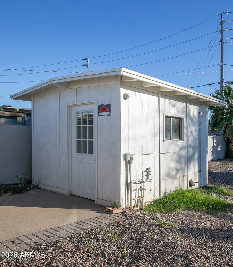 Charming,fully remodeled mid-century block home in a desirable,established Phoenix neighborhood! Ideally located within walking distance to shopping,grocery stores,dining,and schools,with an easy commute to downtown Phoenix,Sky Harbor,and Encanto Golf Course. This single-level home sits on a large lot and features exposed beams,abundant natural light,updated flooring,and fresh neutral paint. The modern kitchen offers sleek cabinetry,granite countertops,stainless steel appliances,and a gas range. Updates include new windows,doors,electrical panels,bathrooms,and interior finishes. Enjoy a spacious backyard with low-maintenance landscaping,turf and rock,a covered patio,extra storage sheds,and a cooled shop with laundry--ideal as a studio,flex space,or primary.