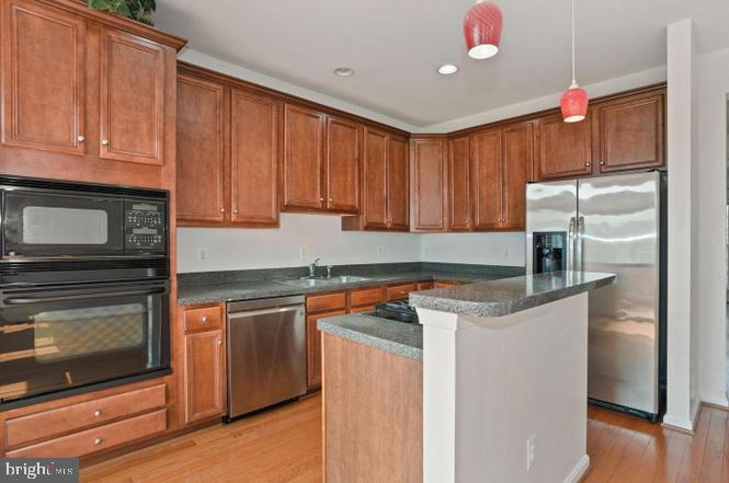 Elegant Brick-Front Townhome in Broadlands Welcome to this meticulously maintained three-level Van Metre townhome, offering three bedrooms, three and a half baths, and an oversized two-car garage in one of Broadlands’ most sought-after communities. Bright, spacious, and designed with care, this residence combines comfort, style, and convenience. The main level opens with an inviting foyer leading into formal living and dining spaces accented by hardwood floors—ideal for both entertaining and quiet evenings at home. A large family room connects seamlessly to the gourmet kitchen, which is outfitted with granite countertops, a gas cooktop, wall oven, built-in microwave, generous cabinetry, and a center island for both prep and gathering. The breakfast area extends onto a private deck, offering a perfect setting for outdoor dining or end-of-day relaxation. Upstairs, the primary suite features tray ceilings, a walk-in closet, and a spa-inspired bath with dual vanities, soaking tub, and separate shower. Two additional bedrooms with vaulted ceilings and custom closets, along with a conveniently located laundry area, complete the upper level. The walk-out lower level offers a spacious recreation room, half bath, additional storage, and access to a fully fenced backyard—well-suited for entertaining or enjoying privacy outdoors. This home is located within the highly regarded Loudoun County school district (Mill Run ES, Eagle Ridge MS, Briar Woods HS) and is just minutes from the Silver Line Metro, Brambleton Town Center, Dulles Airport, and a wide array of shopping and dining. Community amenities include pools, tennis courts, playgrounds, trails, and lakes, providing a resort-style living experience.