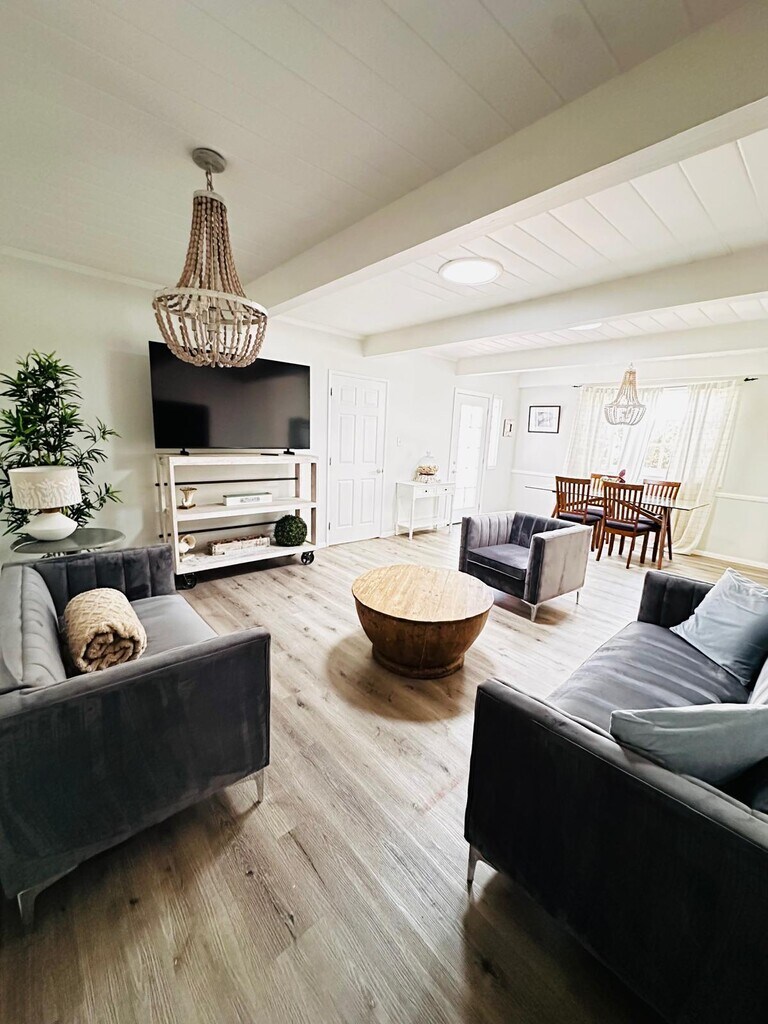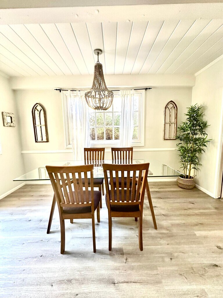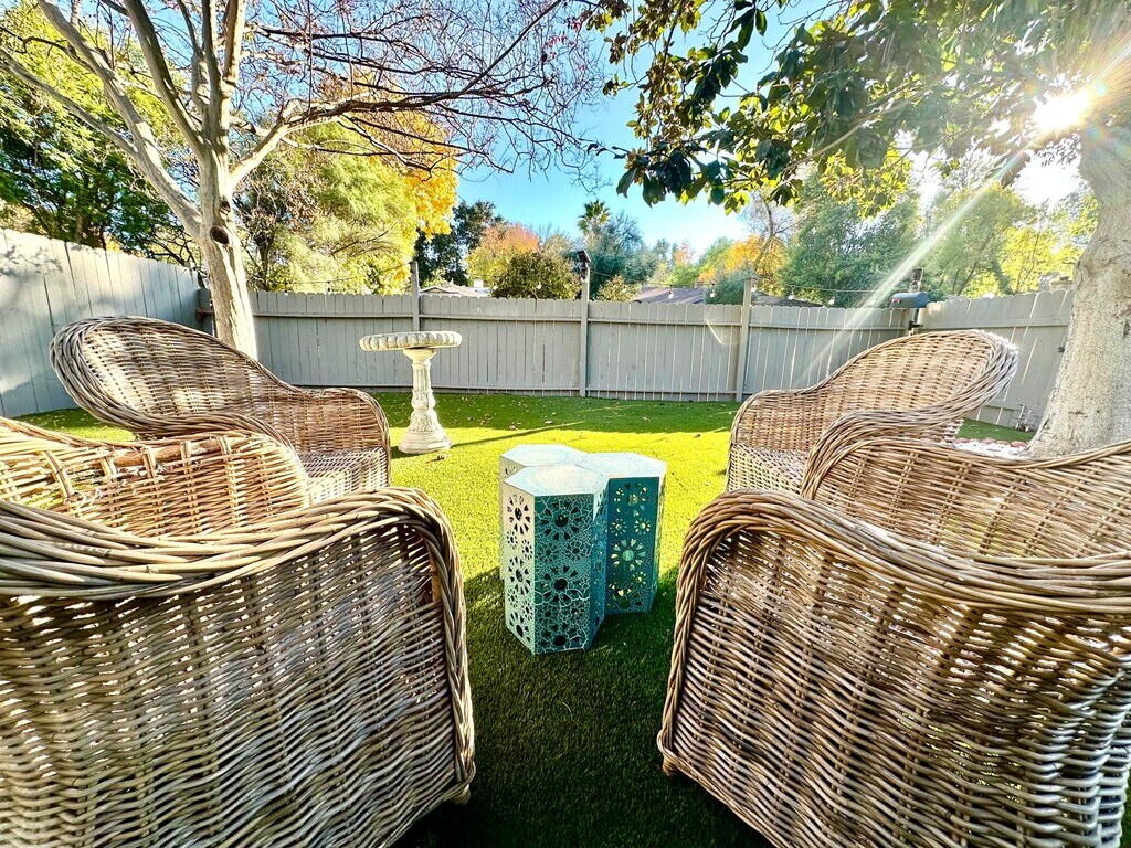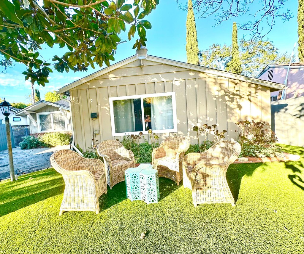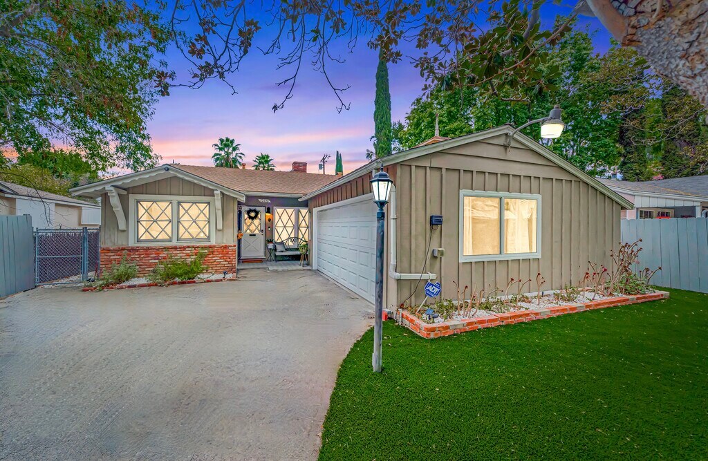 This stunning 3-bedroom, 2-bathroom residence effortlessly harmonizes comfort, elegance, and practicality, all nestled in a safe, family-friendly neighborhood. As you step inside, you'll be captivated by the airy, open-concept living room featuring high ceilings and an abundance of natural light that creates an inviting atmosphere. Culinary enthusiasts will adore the updated kitchen, which is a dream come true for any cooking lover. Equipped with contemporary appliances and ample counter space, this warm and welcoming haven is perfect for hosting memorable family gatherings and dinner parties. When it's time to unwind, retreat to the serene master suite, complete with a fully renovated bathroom. The additional two bedrooms are generously sized, providing plenty of storage options and room for the whole family to thrive. Step outside to discover your very own fully fenced-outdoor paradise! The delightful patio sets the scene for unforgettable summer barbecues and intimate dinners, all framed by lush, low-maintenance landscaping that adds to the allure of this peaceful residence a private oasis for relaxation and fun. In addition, the garage features a versatile bonus room that can serve as additional storage, a cozy hangout spot, or an efficient office space. Recently renovated, it boasts new flooring and drywall, along with a wall-mounted AC unit for your comfort. You'll love the unbeatable location of this home! Situated in a highly sought-after neighborhood known for its safety and family-friendly environment, you're just minutes from a variety of shopping malls, restaurants, and recreational facilities. And for beach lovers, the beautiful shores of Malibu are only a 20-minute drive away, making spontaneous beach days a breeze. With top-rated schools, parks, and a vibrant community just around the corner, this Woodland Hills gem is the perfect choice for anyone seeking the ultimate Californian lifestyle. Don't miss your chance to call this enchanting home your own!