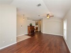 This beautiful one-story home in the highly sought-after Chandler Creek community offers 4 bedrooms, 2 full baths, a 2-car garage, and a spacious 2,287 sq. ft. layout designed for comfortable and flexible living. The light and open floor plan features designer-neutral paint, wood-style and tile flooring throughout (no carpet), and a welcoming family room with a cozy fireplace that flows naturally into the kitchen, which includes granite countertops, stainless steel appliances, and a wraparound breakfast bar perfect for everyday meals or entertaining. A separate formal living and dining area provides additional space for gatherings, work, or play. The large primary bedroom includes an en-suite bath with a soaking tub, separate shower, dual vanities, and a walk-in closet, while the secondary bedrooms share a well-appointed full bath. Outside, the home offers a generous backyard with a covered patio on a quiet street—ideal for relaxing or creating your own backyard setup. With close proximity to schools, shopping, restaurants, and major conveniences, this home offers an excellent combination of location, comfort, and thoughtful updates.