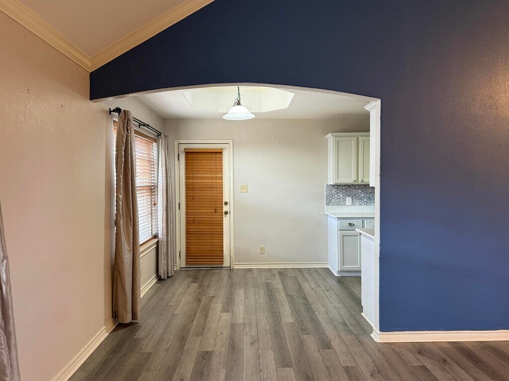 Charming rental property in the San Isidro Taos subdivision. This home boasts high ceilings in the living area, a formal dining room, a cozy breakfast nook, three bedrooms, and two bathrooms. The backyard features a covered patio, ideal for afternoon relaxation, and is fully fenced with a storage unit. Conveniently located within walking distance to North Central Park, restaurants, and schools—perfect for your new home!