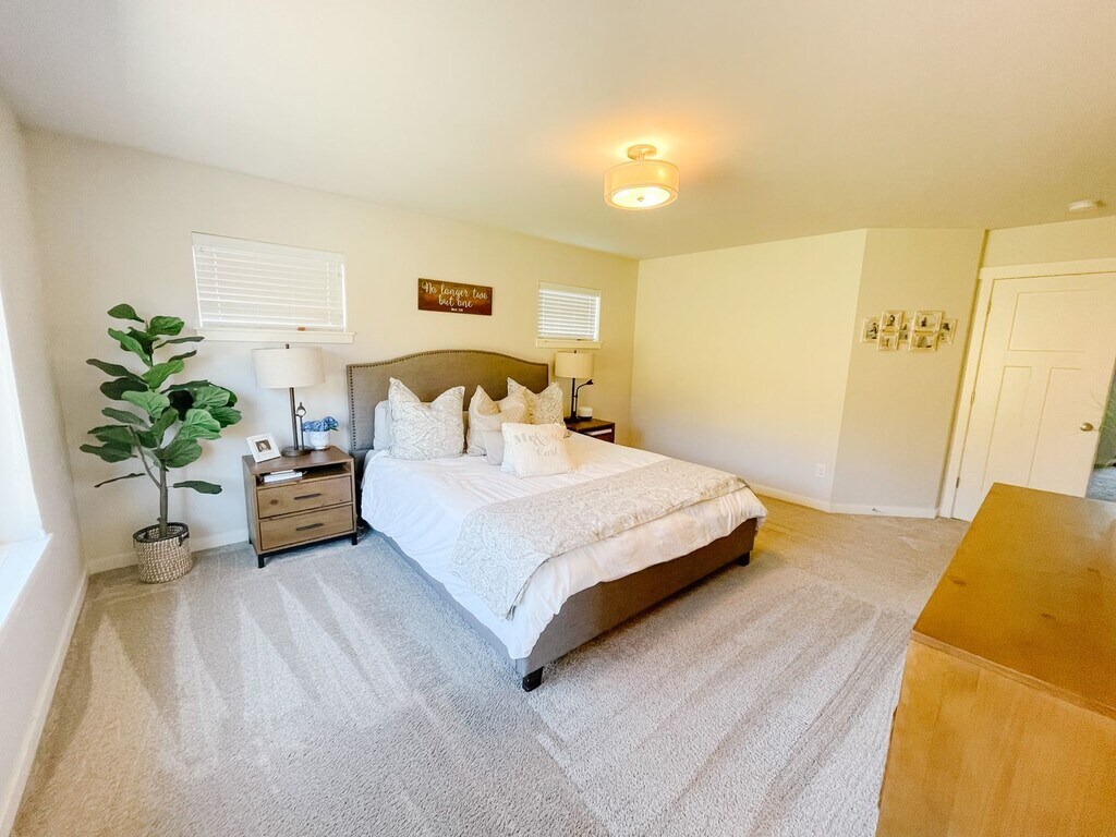 4 bedroom, 2.5 bath home in Silverdale's Woodbridge Crossing neighborhood! Downstairs features open living, dining and kitchen. Kitchen with large pantry, stainless steel appliances and six burner gas range! Gas Fireplace in Living room. Den. Upstairs loft area, laundry room with washer/dryer, and four bedrooms. Primary bedroom with private bathroom with soaking tub, large tile shower, double sinks and walk-in closet. Heat pump provides A/C! Central Kitsap School District. Close to Silverdale and highway. Available Now. Showings available after January 8. Tenant liability insurance required. Applications available at Bobbi Alger