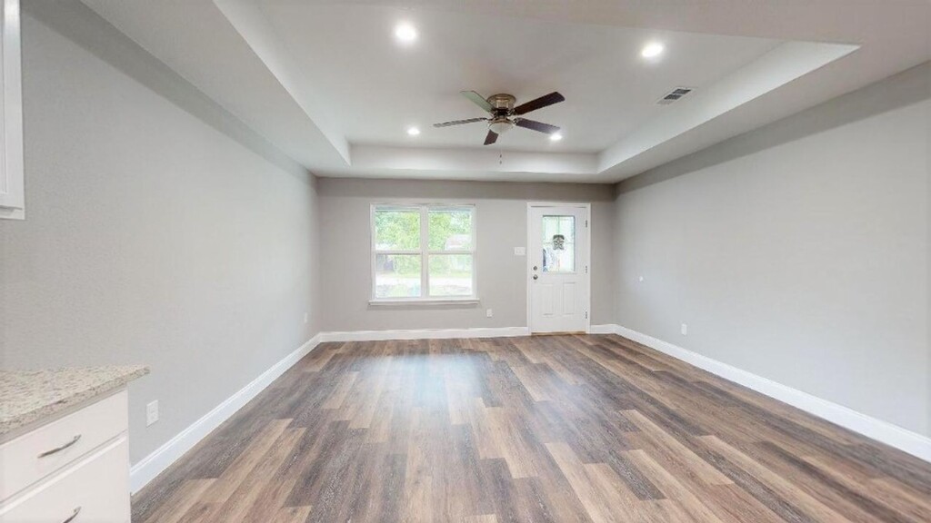 Explore this delightful single-story home featuring three bedrooms and two bathrooms, with a master bath en-suite. This home showcases elegant tray ceilings, granite countertops in the kitchen and bathrooms, luxury vinyl plank flooring, a generous laundry room, extensive closet space, an external storage room, a covered porch, and a carport. Relish the wooded surroundings teeming with wildlife. Please note: The photos and virtual tour represent a one-story home model and may not depict this specific build. This home has all you could desire. Pets are permitted with a one-time pet fee of $200 for the first pet and $100 for each subsequent pet. The best part? No recurring monthly pet fees! Move in today