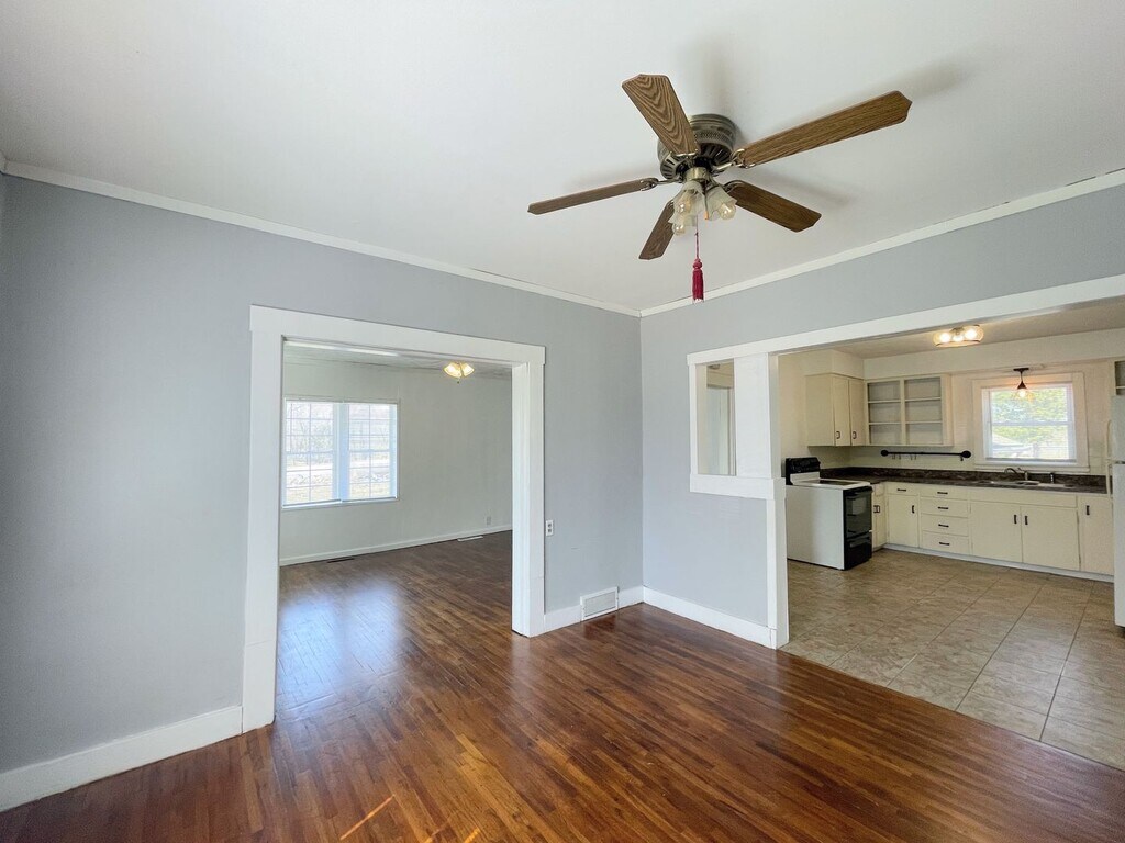 2 bedroom home with a bonus loft area. There is fresh paint, and redone hardwood floors throughout. Updated bathroom with newer shower surround. Large privacy-fenced backyard with a shed, and a concrete slab with a basketball goal. Just outside city limits for a quiet, country feel! Stove and fridge provided. Washer and dryer hookups located in the basement. The property has a well. Tenant is responsible for all utilities and lawncare. Fill out a free application through www.hutch.house, and we will consider a showing. Call Sadie or Allison with questions at .