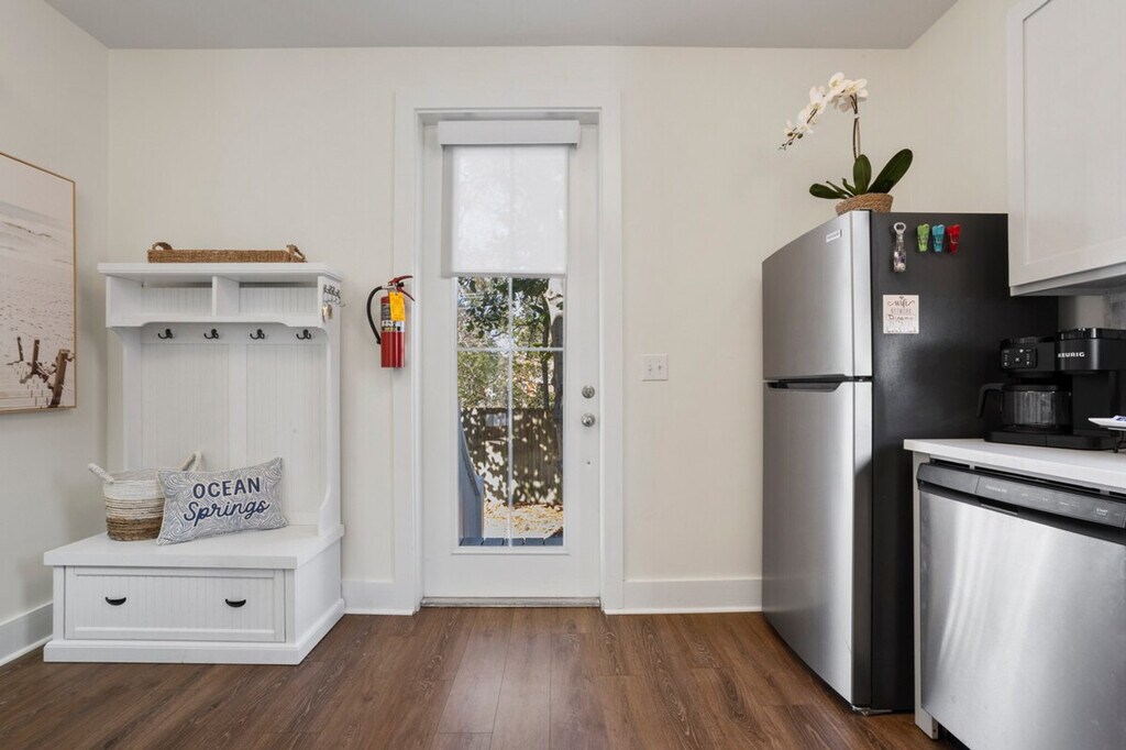 The advertised rate of $7,925/month is the lowest available price, based on a 1 month(s) stay with a move-in date of April 18, 2026. Rates vary depending on the duration of stay, season, and other parameters. For exact pricing and additional pricing components, please visit our website and enter your desired move-in and move-out dates. The rate is applicable when billed upfront; it can be higher if billed in multiple payments. Feel at home in this beautiful 2-bedroom coastal cottage in downtown Ocean Springs. This bright, two-story home is perfect for families or friends. Designed for comfort and style, this bright and airy two-story cottage features an open-plan living space filled with natural light. Relax on the plush, light-blue sectional sofa in the cozy living room, complete with a smart TV for streaming. The stylish, modern kitchen features high-end stainless steel appliances, a coffee station, and all the essentials for preparing delicious meals. Two spacious bedrooms provide peaceful retreats with cozy bedding and ample storage. Two full bathrooms each offer a spa-like bathtub for a relaxing soak, and a convenient half-bathroom is also located on the main floor. Enjoy your morning coffee on the charming back patio or relax on the welcoming front porch. Amenities include high-speed Wi-Fi, smart TVs, and an in-unit washer and dryer, as well as beach essentials such as chairs and towels. The golf cart is available for a rental fee of $100 per day. Please provide advance notice if you would like to use it so arrangements can be made. Just steps from local boutiques, restaurants, and the waterfront, this home is perfectly located for exploring downtown Ocean Springs. This is a two-story home and requires the use of stairs to access the bedrooms. Detailed check-in instructions, including the door code, will be sent to you on the morning of your arrival. Guests will have full and private access to the entire home, including both floors, the front porch, and the back patio. Enjoy the convenience of self check-in with a smart lock and free, dedicated parking on the premises. Includes a desk in one of the bedrooms, creating a dedicated workspace. [SI]