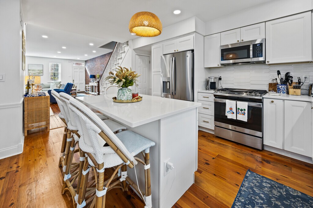 Welcome home to 2207 Lombard Street in the heart of charming Fitler Square! This beautifully rehabbed 3 bedroom townhome is a Philadelphia classic with a blend of original details and modern upgrades. Enter into the living room with a beautiful mantle, high ceilings, hardwood floors, and lovely natural light coming in from the south-facing windows. The dining area is the perfect space for family dinners, doubles as a kids play area and features a newly installed half bathroom. The newly upgraded kitchen with stainless appliances, quartz countertops, and access to the private back patio, lined in lovely blue stone for outdoor grilling, dining or relaxing in the 7 person hot tub. The second level features an upgraded full bathroom with a tub/shower combo and double sink as well as three spacious bedrooms. The lower level of this home is great for storage and features a modern washer/dryer. You will love this fabulous location just a half block from Fitler Square park, named by the Philadelphia Inquirer as “one of the most adorable pocket parks in Philadelphia—and maybe all of America,” nearby to local restaurants and shops, the Schuylkill River running/walking/biking trail, and a short walk to Goddard School, the Philadelphia School, Center City offices, CHOP, Penn, Drexel and 30th Street Station.