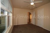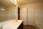 $500 off first month’s rent! This spacious 4-bedroom, 2-bath home offers the perfect blend of comfort and functionality. Featuring a 2-car garage, vinyl plank flooring throughout the main living areas, and soft carpet in all bedrooms, this home is designed with your lifestyle in mind. The open layout includes a formal dining area, perfect for entertaining. The primary bathroom is a relaxing retreat with a garden tub, dual vanity sinks, and a large walk-in closet. The kitchen comes fully equipped with a glass surface stove, built-in microwave, side-by-side refrigerator, dishwasher, garbage disposal, and plenty of storage space. An indoor utility room adds everyday convenience. Step outside to enjoy a covered patio and a fully privacy-fenced backyard—ideal for outdoor dining or relaxing evenings. The home also includes a water softener system and a garage door opener. Solar panels are available for optional use, and a security system is installed and ready to activate. This well-maintained home has everything you need to live comfortably and stylishly. PRICE AND AVAILABILITY ARE SUBJECT TO CHANGE WITHOUT NOTICE. Application Information: * Offered by Hunter Rentals & Sales Visit our website, for an online application and to view complete listing information. Questions, call . * We do full background checks & are seeking qualified, long-term residents. To view our rental criteria, visit our website: * Application Fee: $65.00 each. * Security Deposit is due at lease signing. * Once approved, a one-time non-refundable administration fee of $125 will apply. The administration fee is due by the lease start date.