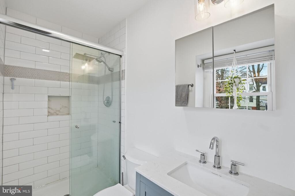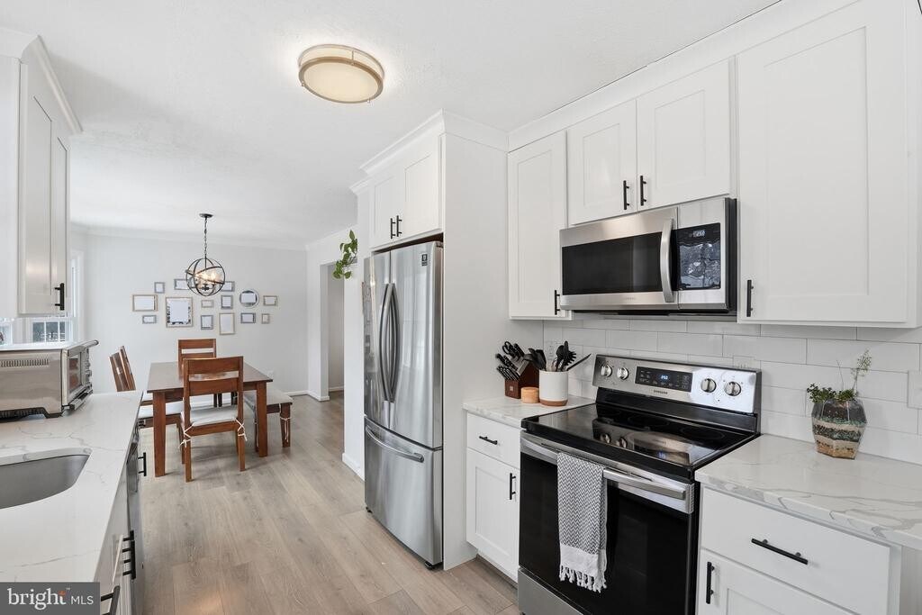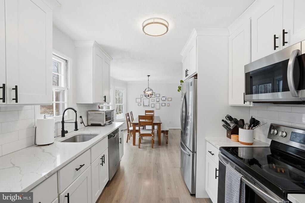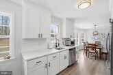 Fully renovated in 2021, this charming white brick home shines with style and comfort, perfectly situated on a quiet cul-de-sac just minutes from the Glenmont Metro Station, multiple shopping centers, and convenient commuter routes. Step inside to a bright, open main level filled with natural light. The stunning kitchen features white cabinetry, quartz countertops, a crisp white tile backsplash, stainless steel appliances, and a sunny corner breakfast nook surrounded by windows. A separate dining room with a beautiful bay window provides the perfect setting for everyday meals or entertaining. A convenient half bath completes this level. Upstairs, you’ll find three spacious bedrooms with wall-to-wall carpeting, including a primary suite with a private ensuite bath. The fully finished lower level offers exceptional additional living space, featuring a large open recreation area with sliding glass doors leading to a generous patio with pergola — ideal for relaxing or entertaining outdoors. This level also includes a fourth bedroom and a full bathroom, perfect for guests, a home office, or extended living. A long driveway with an attached carport provides covered parking for one vehicle plus space for two additional cars in the driveway. Bright, updated, and move-in ready — this home combines modern finishes, flexible living space, and an unbeatable location.